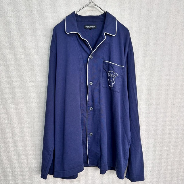EMPORIO ARMANI 長袖シャツ 熊柄 ネイビー サイズM HR2136
