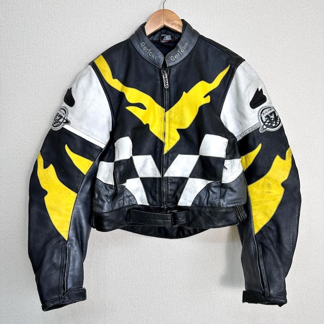 Hein Gericke pro sports レーシングレザージャケット 黒×黄×白 サイズ44 HR2218 ■ 商品説明 Hein Gericke pro sportsのレザージャケットです。ブラックをベースに、イエローとホワイトの切り替えデザインが映えるスポーティーな一着。ライダースらしい存在感があり、バイクウェアとしてはもちろん、ストリートスタイルの主役アイテムとしてもおすすめです。 しっかりとしたレザー素材で、重厚感のある仕上がり。デザイン性と機能性を兼ね備えたアイテムと思われます。 ■ サイズ(約・cm) 着丈:55 袖丈:64 肩幅:42 ※バストの記載がないため、実寸は不明です。 ■ サイズ ・サイズ44(メンズS〜M相当)。 ・肩幅は標準的で、比較的コンパクトなシルエット。 ・タイトめに着用したい方にもおすすめのサイズ感です。 ■ 注意事項 ・平置き採寸のため、多少の誤差があります。 ・写真と実物の色味が異なる場合があります。 ・中古品の場合、わずかな使用感がある場合があります。