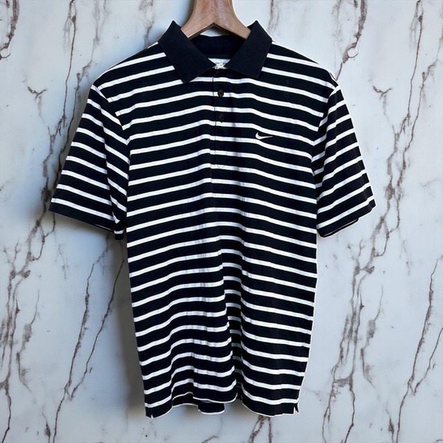 we0492 NIKE GOLF Polo Shirt, White and Black, Size L ■ 商品説明 NIKE GOLFのポロシャツです。 ホワイト×ブラックの配色で、スポーティーかつ清潔感のあるデザイン。ゴルフシーンはもちろん、タウンユースにも取り入れやすい一着です。 軽やかな着心地で動きやすく、これからの季節にも活躍。シンプルなデザインで、幅広いコーディネートに合わせやすいアイテムです。 ■ サイズ(約・cm) 着丈:66.5 袖丈:23 肩幅:47 バスト:104 ■ サイズ ・表記L ・実寸より、一般的なメンズL相当のサイズ感です。 ・標準的なシルエットで、すっきりとした着用感が期待できます。 ※サイズ感は目安となります。 ■ 注意事項 ・平置き採寸のため、多少の誤差があります。 ・写真と実物の色味が異なる場合があります。 ・中古品の場合、わずかな使用感がある場合があります。