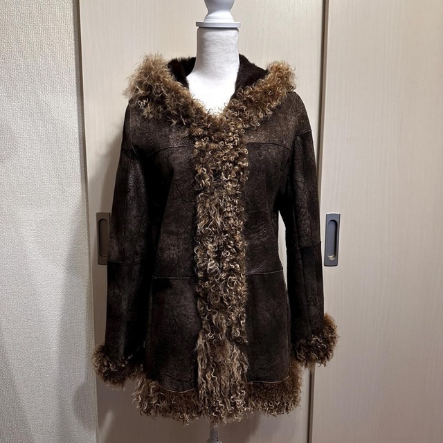24SINCLAIR ムートンコート ブラウン サイズ表記なし HR1285 ■ ブランド情報 24SINCLAIR(トゥエンティフォー・シンクレア)は、上質な素材感と存在感のあるアウターを展開するブランド。 クラシックな雰囲気と実用性を兼ね備えたデザインが特徴です。 ■ 商品説明 温かみのあるブラウンカラーのムートンコート。 ムートン特有のボリューム感と高い保温性が魅力で、冬の主役アウターとして活躍します。 シンプルなデザインのため、カジュアルからきれいめまで幅広いスタイリングに合わせやすい一着です。 ■ 表記サイズ ・サイズ表記なし ■ 実寸サイズ(約・cm) 着丈:87 袖丈:58 肩幅:44 バスト:100 ■ サイズ感(目安/S・M・L換算) 実寸より、レディースM相当のサイズ感です。 厚手のインナーを着用するとややフィット感のある着用感になります。 ■ カラー ・ブラウン ■ 素材 ・表記なし(ムートン) ■ コンディション ・中古品 ・目立つ汚れや大きなダメージはなく、まだまだ着用可能な状態です。 ■ 注意事項 ・平置き採寸のため、多少の誤差が生じる場合があります。 ・中古品にご理解のある方のみご購入をお願いいたします。 ・モニター環境により、実際の色味と異なって見える場合があります。