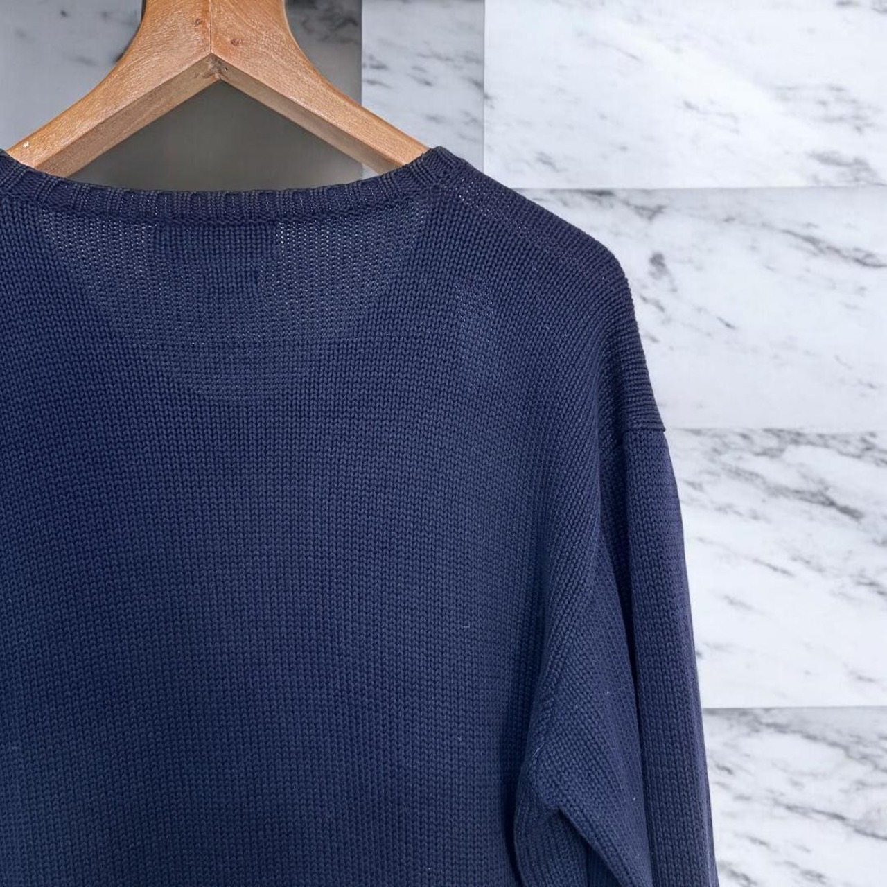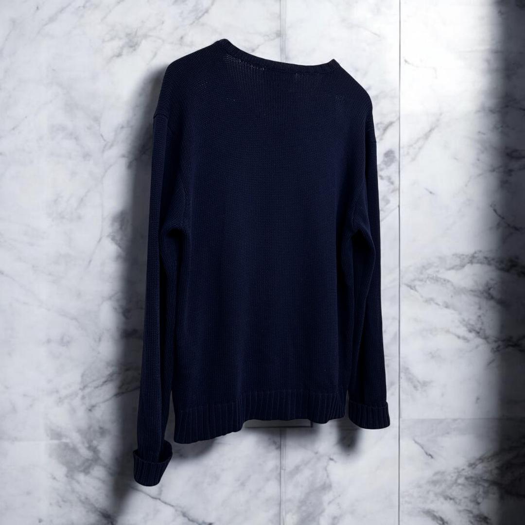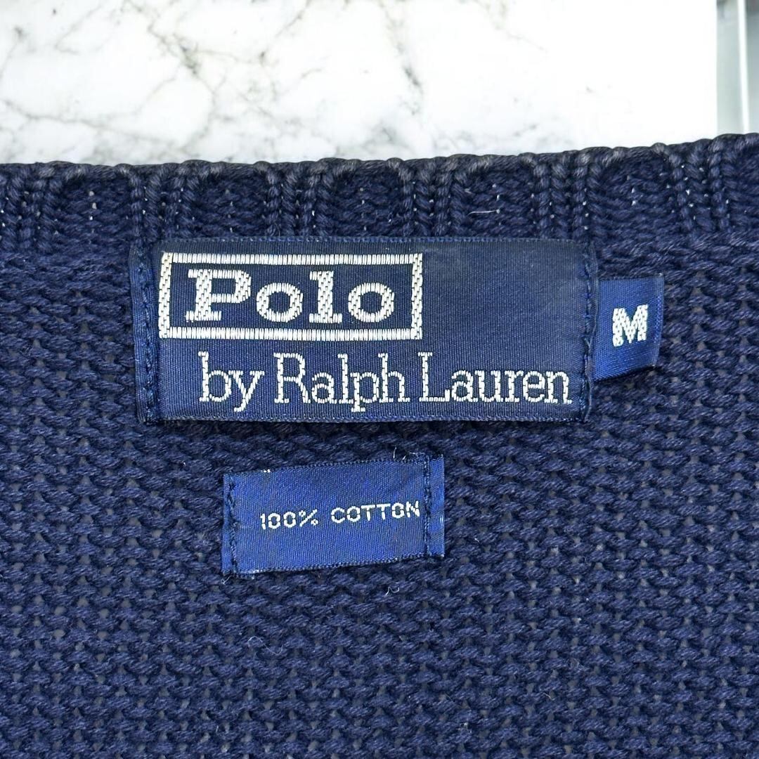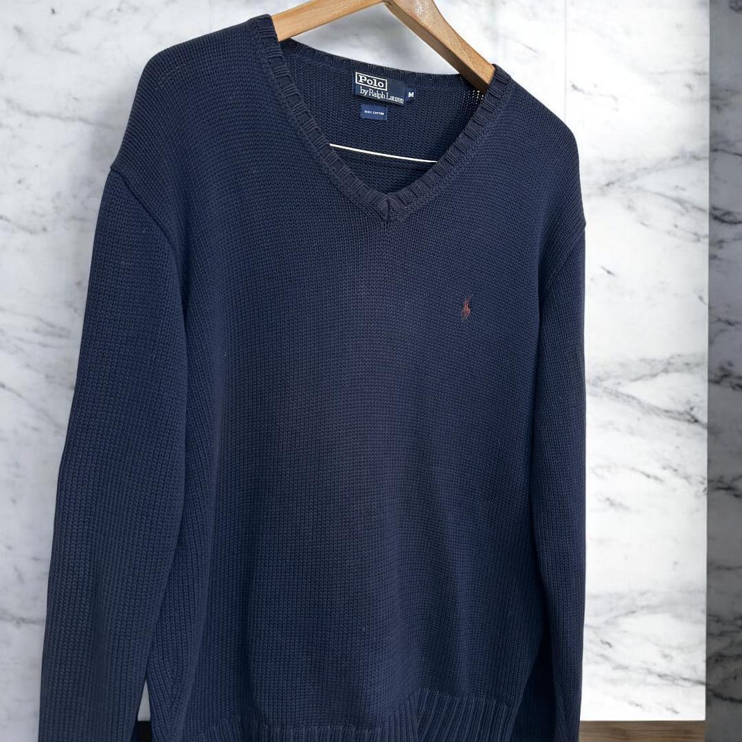 POLO Ralph Lauren V-neck 100% cotton sweater ネイビー サイズM we0402