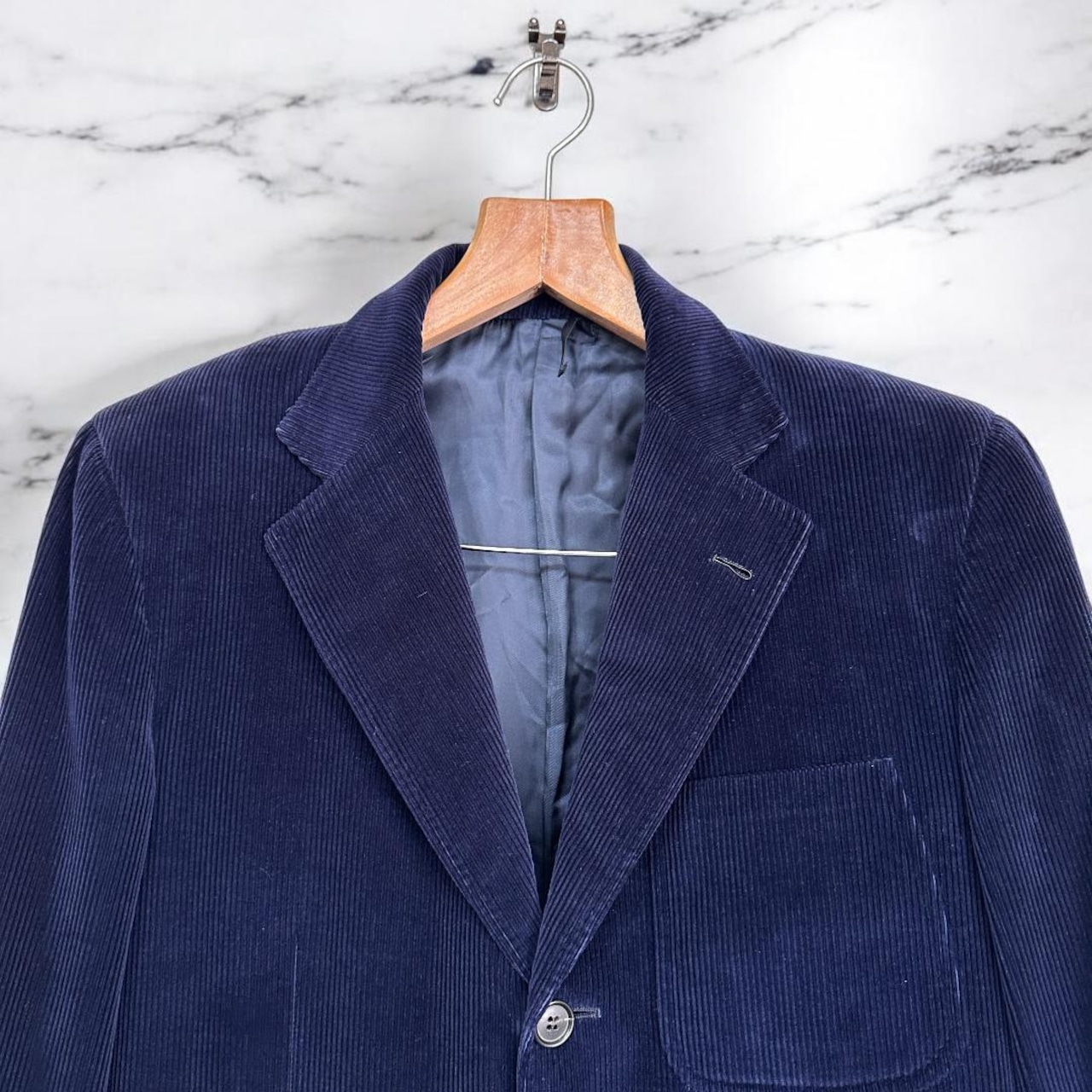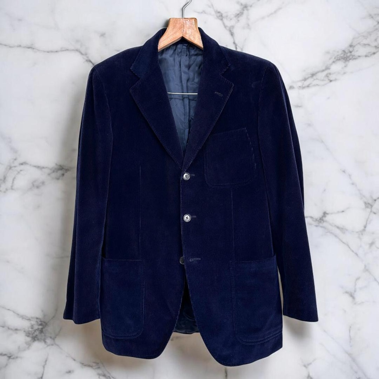 イタリア高級ブランド Ermenegildo Zegna(エルメネジルド・ゼニア) のTESSUTOライン、コーデュロイ素材ジャケット(ネイビー)です。柔らかなコーデュロイ生地で秋冬シーズンのカジュアル〜ドレスミックススタイルに馴染み、上質な素材感とシルエットが上品さを演出します。年代問わず幅広いスタイリングに合わせやすい一着です。