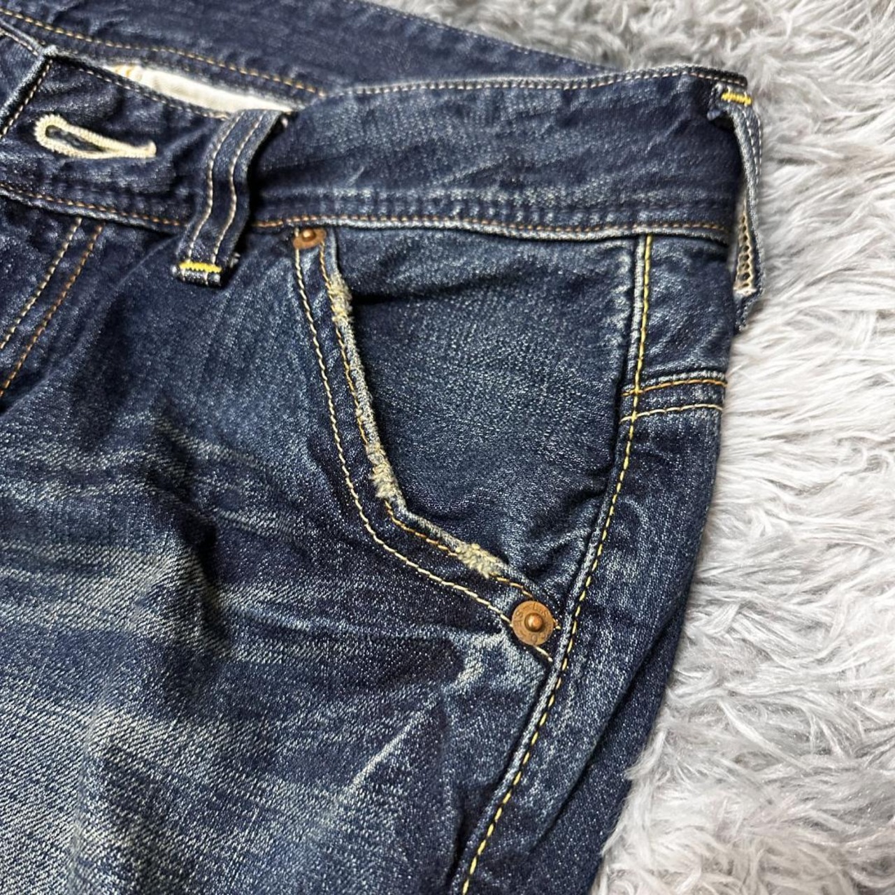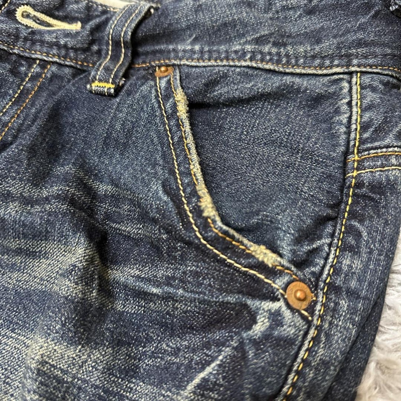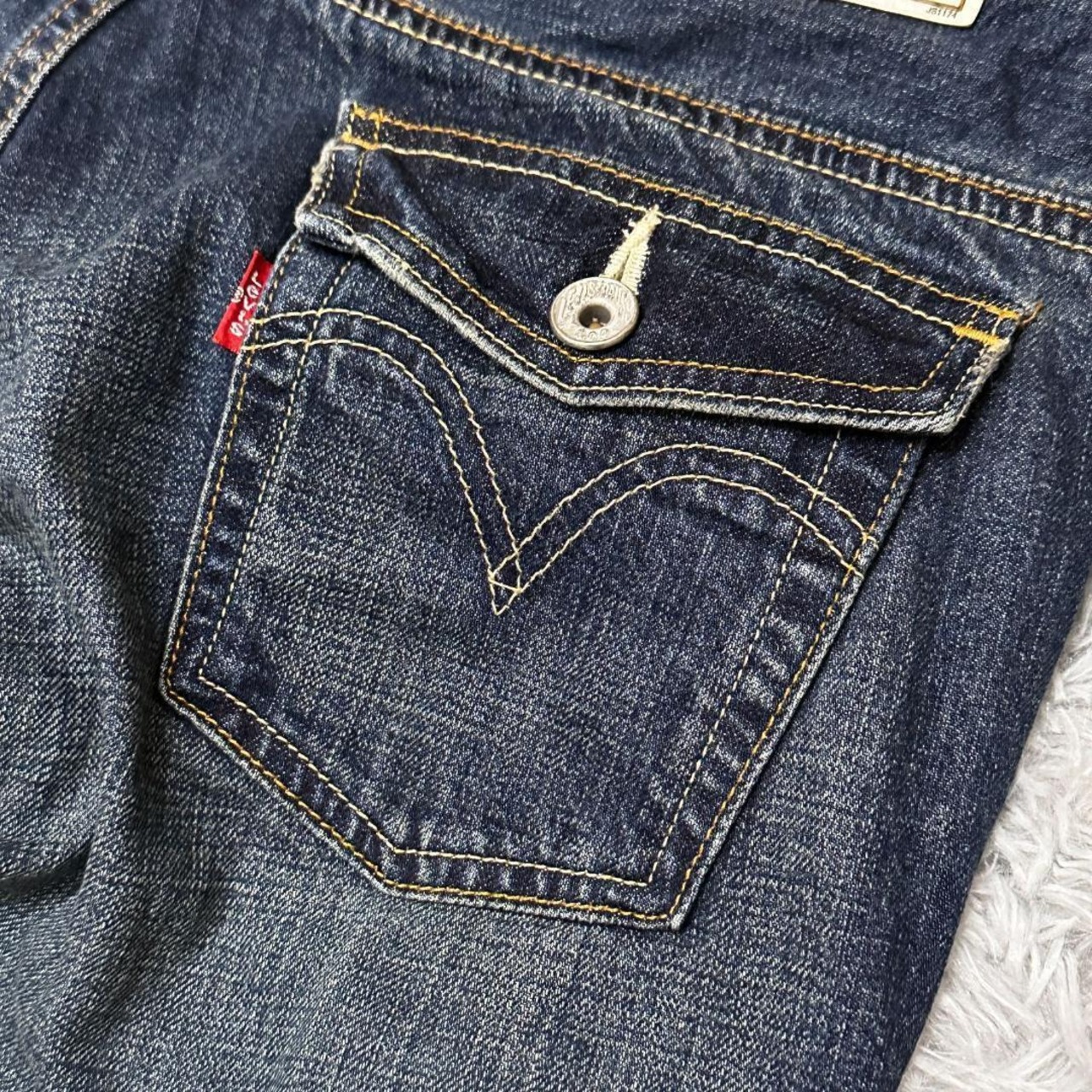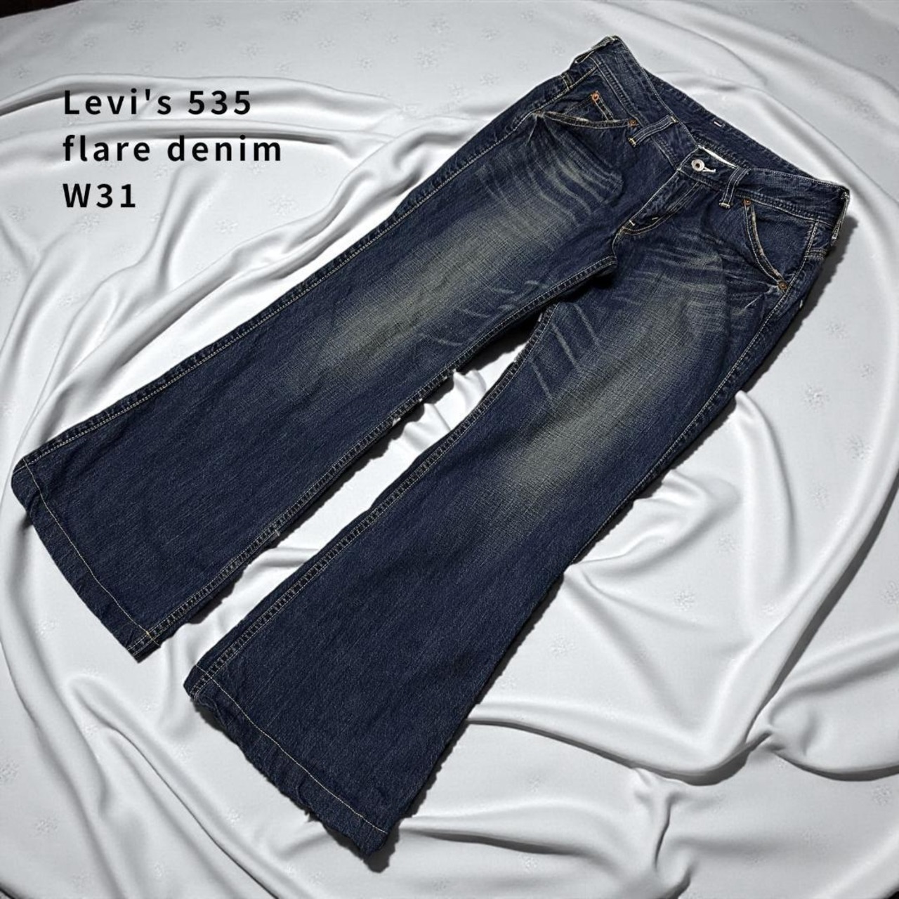Levi's(リーバイス)の535 フレアデニムパンツです。膝下から緩やかに広がるフレアシルエットが特徴で、70sテイストやトレンド感のあるスタイリングに取り入れやすい一本。存在感のあるラインで、シンプルなトップスと合わせるだけでもコーディネートが決まります。中古品のため、着用に伴う色落ちやわずかな使用感が見られる場合があります。