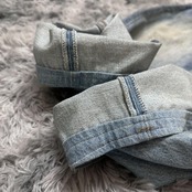 こちらは裾などに補正が施されているため、実寸をご確認のうえご検討ください。中古品のため、色落ちや着用に伴う使用感が見られる場合がありますが、古着ならではの風合いとしてお楽しみいただける状態です。