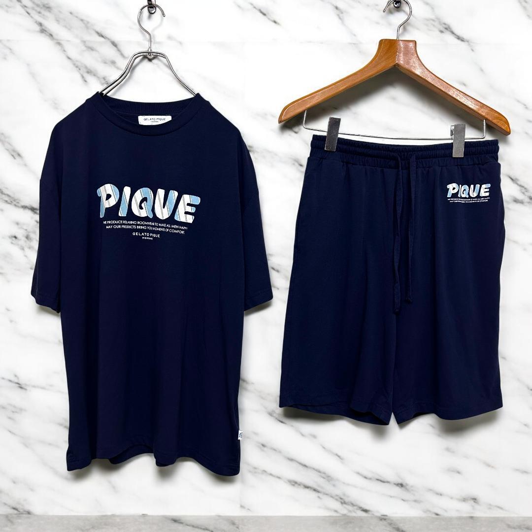 GELATO PIQUE HOMME 【セットアップ】ネイビールームウェア プリント半袖Tシャツ&ショートパンツ サイズM we318