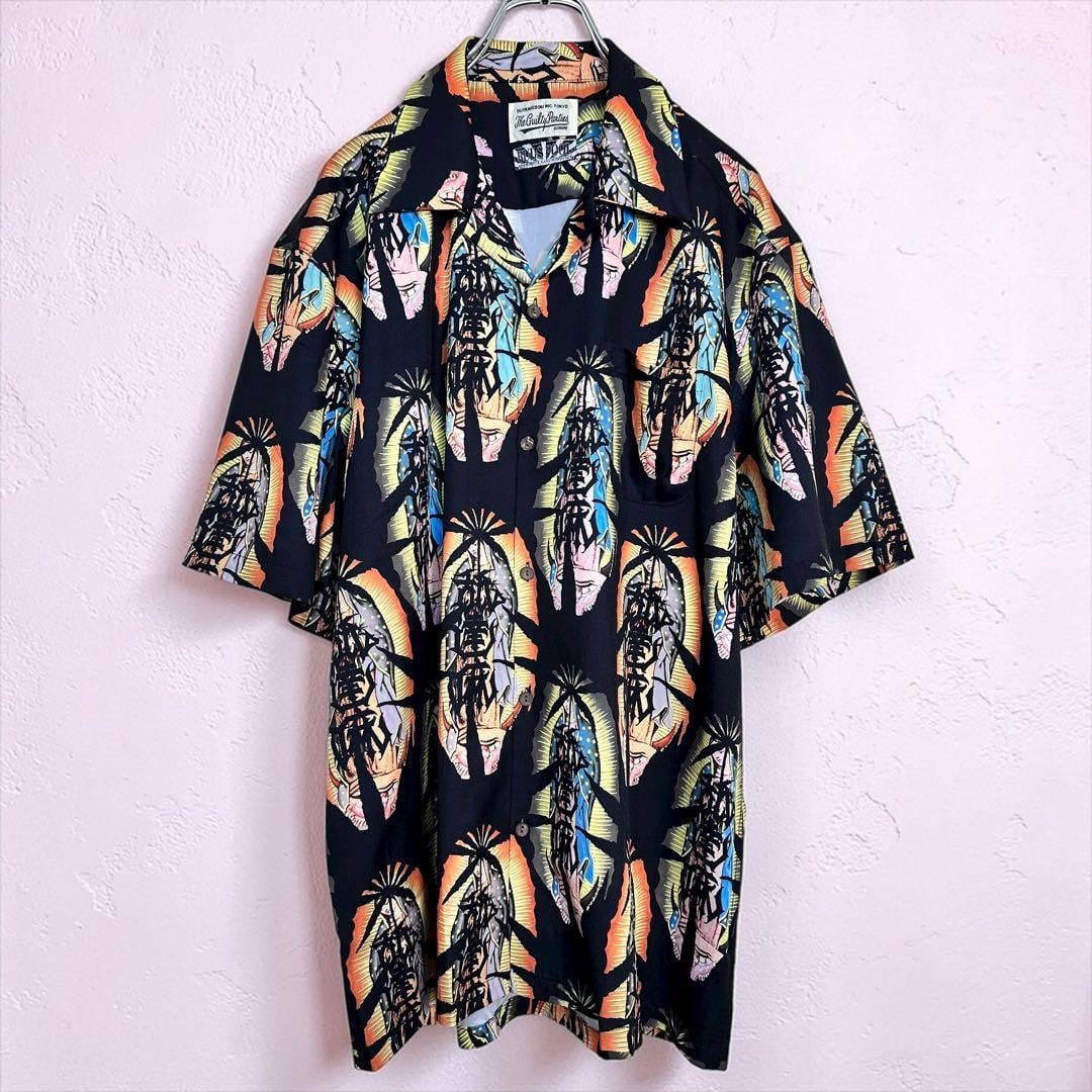 WACKO MARIA(ワコマリア)×BUDSPOOLの「Name Daruma」アロハシャツ、サイズXLです。ブランドらしい存在感のあるグラフィックデザインが特徴で、コーディネートの主役になる一着。上質な素材感とゆとりのあるシルエットで、ストリートからリゾートスタイルまで幅広く活躍します。