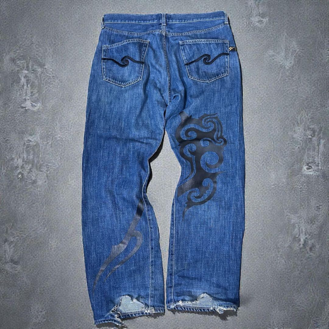 PEACE MAKER Blue Light Ounce Straight Back Print Denim サイズ表記なし we0442