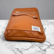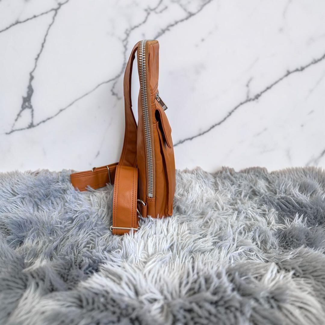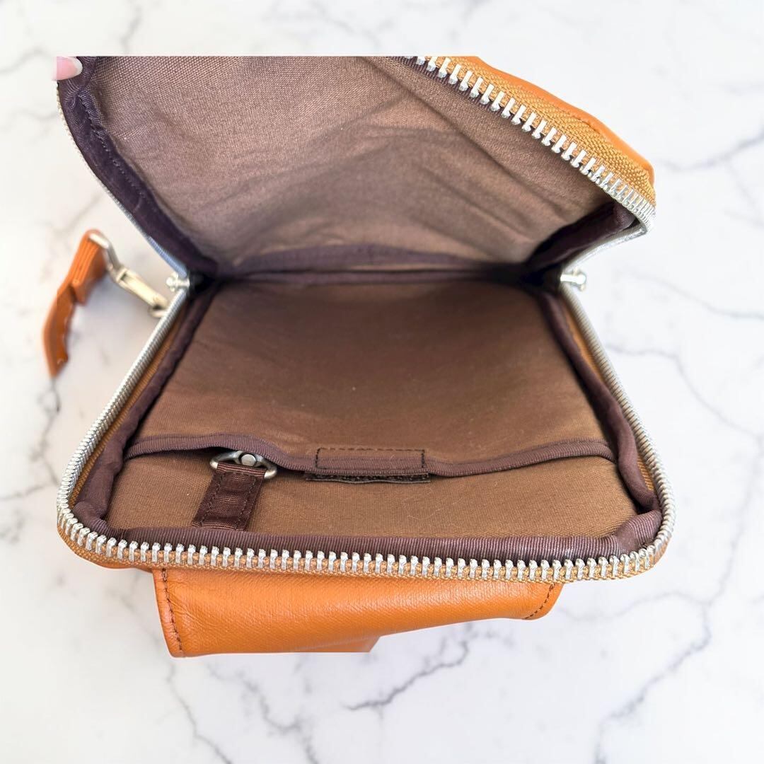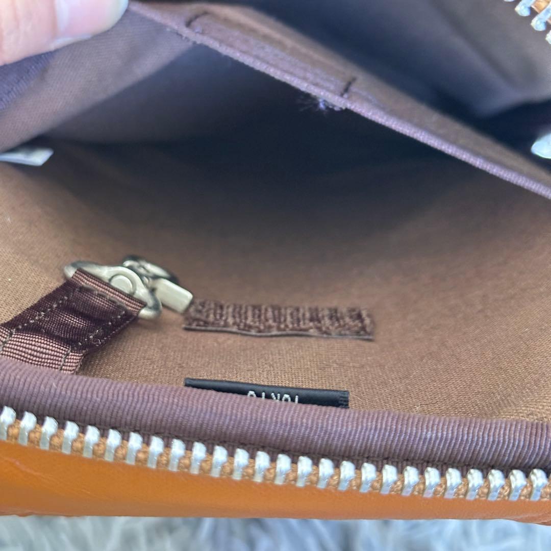 POTERのショルダーバッグです。落ち着いたブラウンカラーで、カジュアルからきれいめスタイルまで幅広く合わせやすいデザイン。スリムなフォルムで、必要最低限の荷物をすっきり持ち運べるコンパクトタイプです。