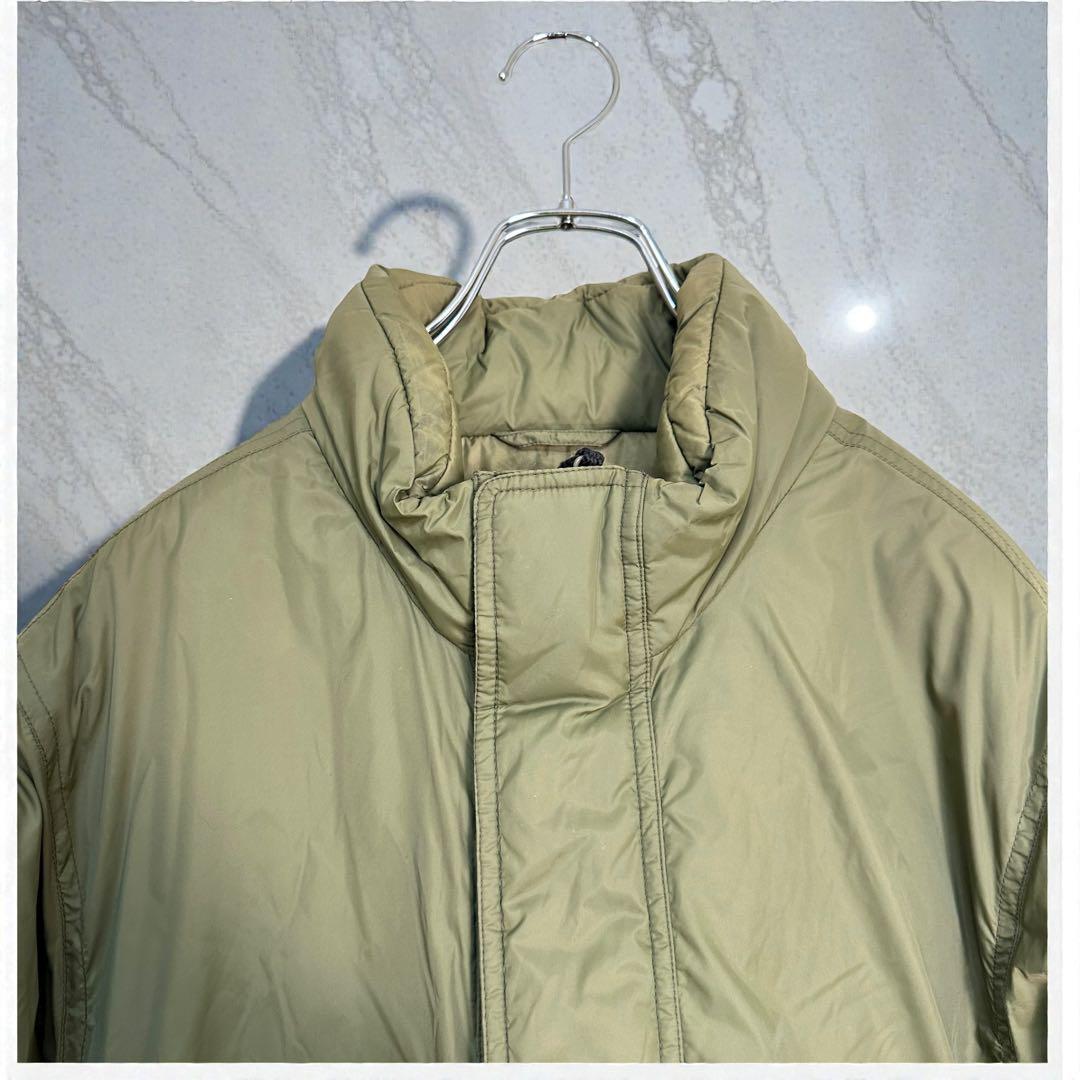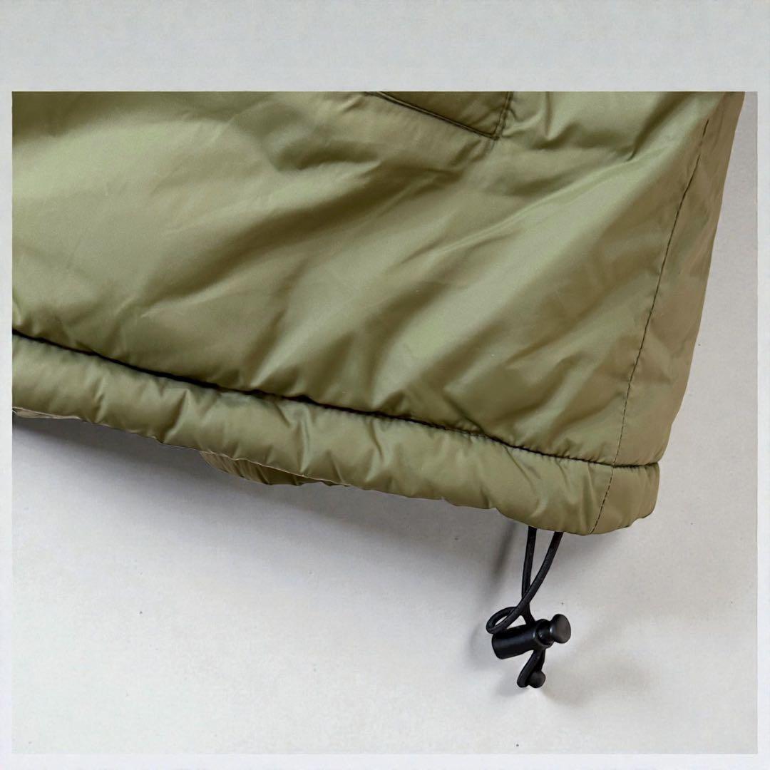 落ち着いたグリーンカラーが特徴で、コーディネートのアクセントにもなる一着。シンプルなデザインながら、程よいボリューム感があり、防寒性も期待できるアイテムです。