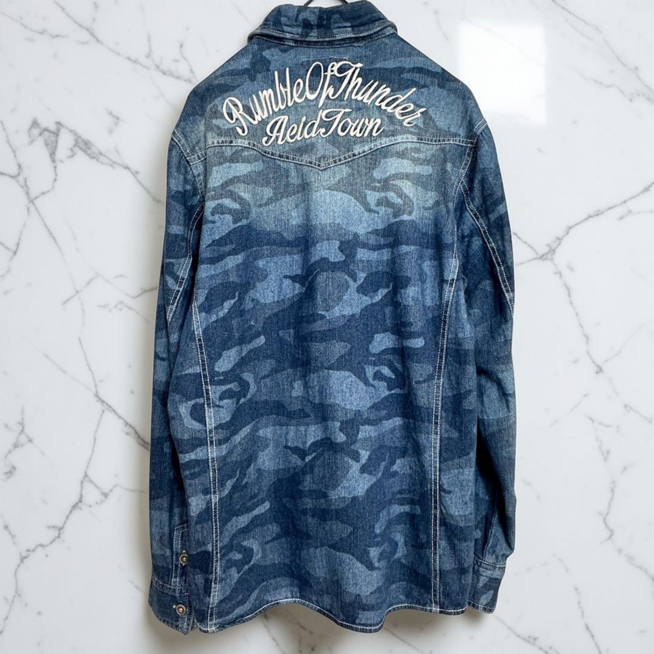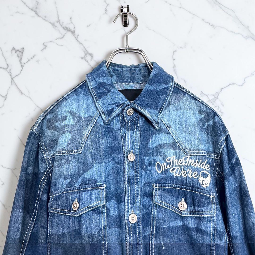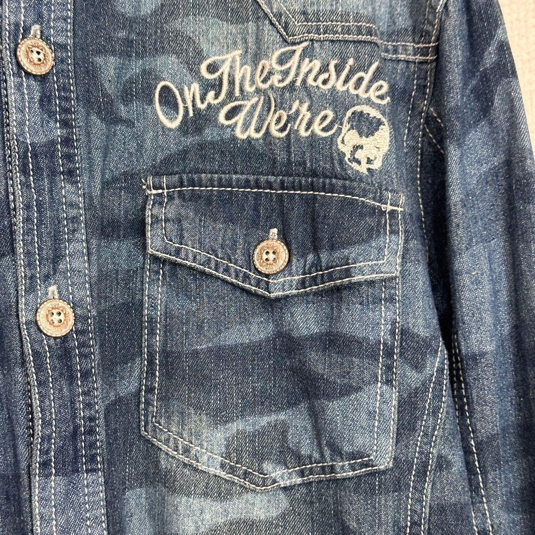 we0460 IN THE ATTIC homme denim shirt, camouflage, size L (some tears)