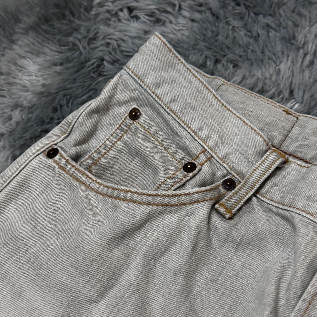 EDWIN(エドウイン)のXU 445 グレーデニムパンツです。落ち着いたグレーカラーで、デニムながらもシックな印象の一本。クセのないシルエットで、カジュアルからきれいめ寄りのスタイルまで幅広く合わせやすいデザインです。中古品のため、着用に伴うわずかな使用感が見られる場合があります。