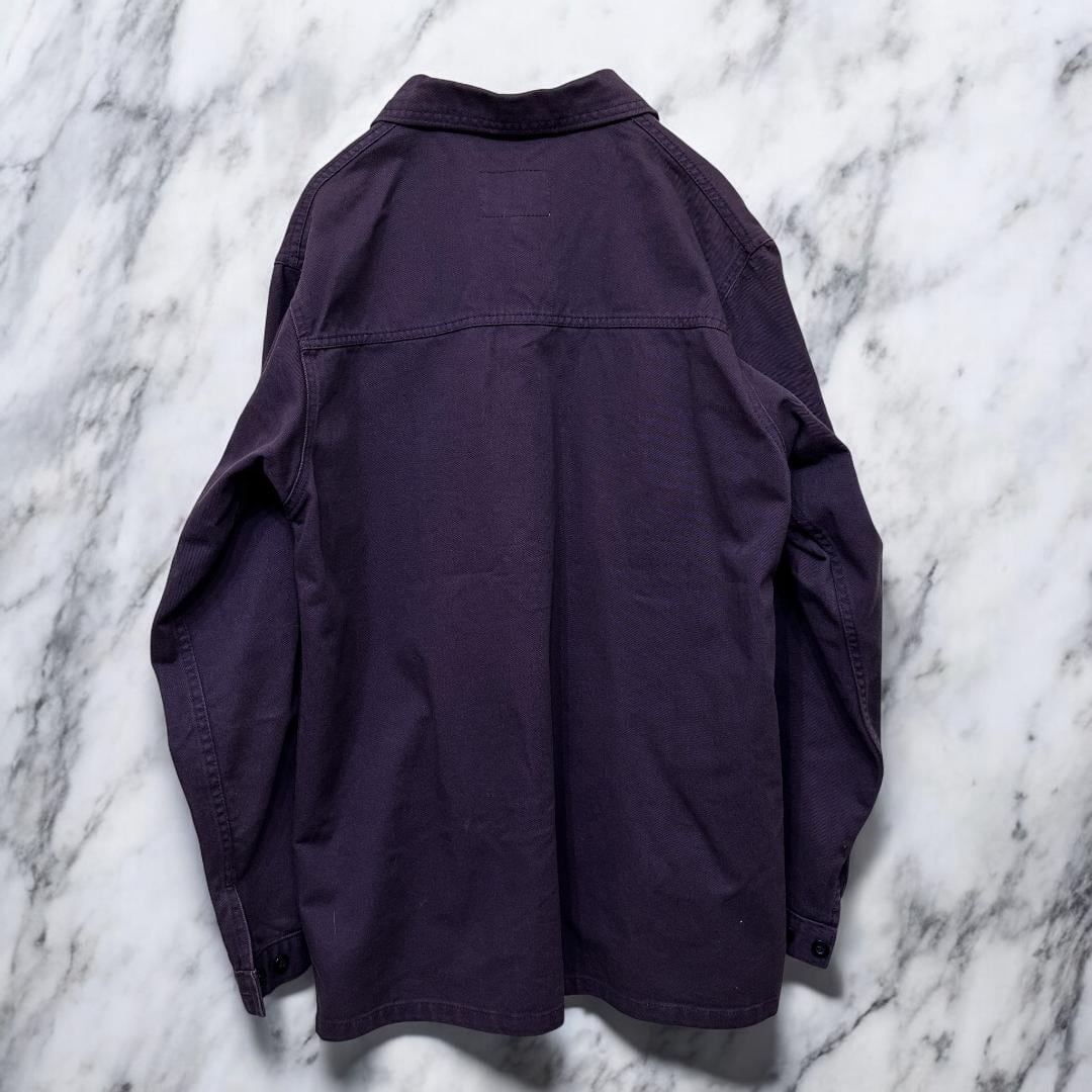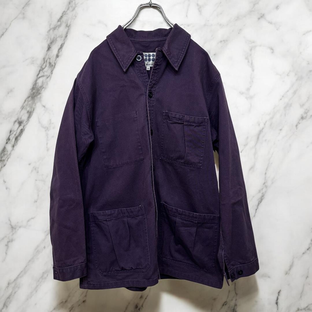 紫(パープル)カラーのデニム素材カバーオールです。ゆったりとしたサイズ感で、カジュアルなデイリースタイルからワークテイストの着こなしまで幅広く対応する一着。しっかりしたデニム生地で程よい存在感があり、季節の変わり目のアウターとしても重宝します。ユニセックスで着用可能なデザインです。