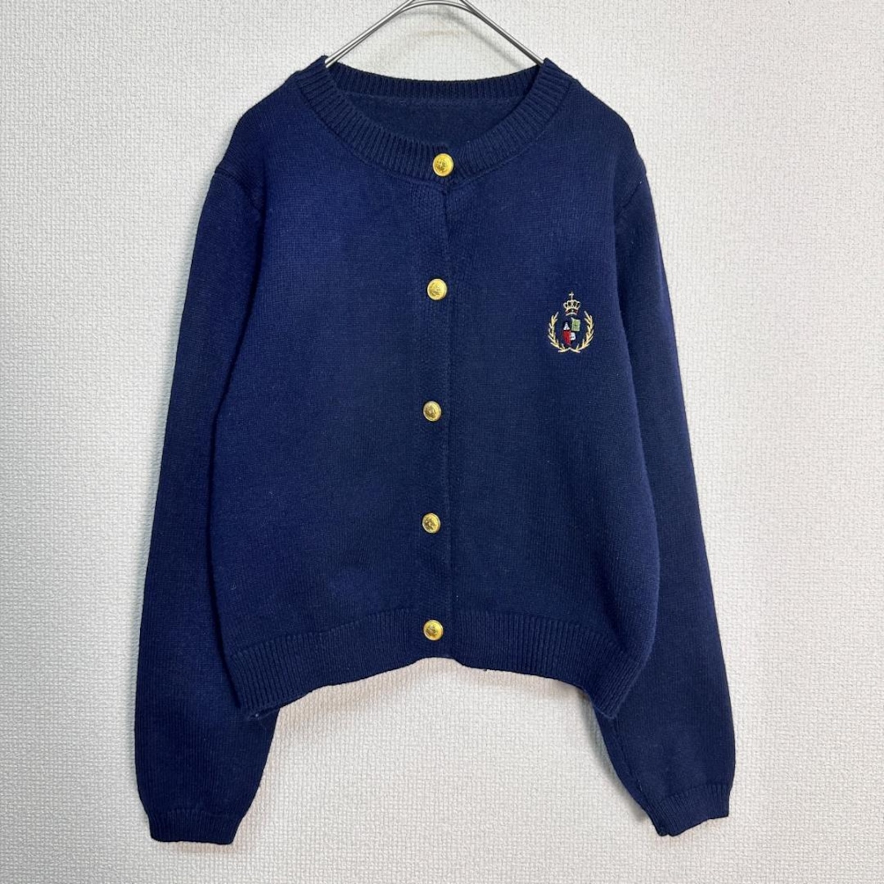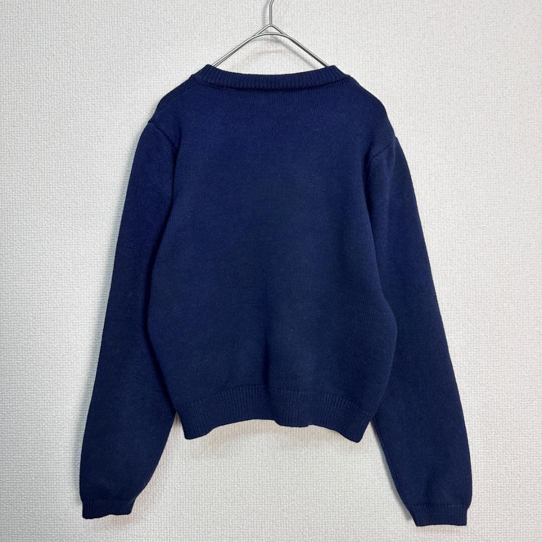 ネイビーカラーのセーターです。落ち着いた色味で、カジュアルからきれいめまで幅広いコーディネートに取り入れやすい一着。シンプルなデザインのため、デニムやスカート、スラックスなどさまざまなボトムと合わせて着用いただけます。サイズ表記タグは確認できませんが、実寸をご参考ください。一般的な中古品として、使用感がある場合があります。