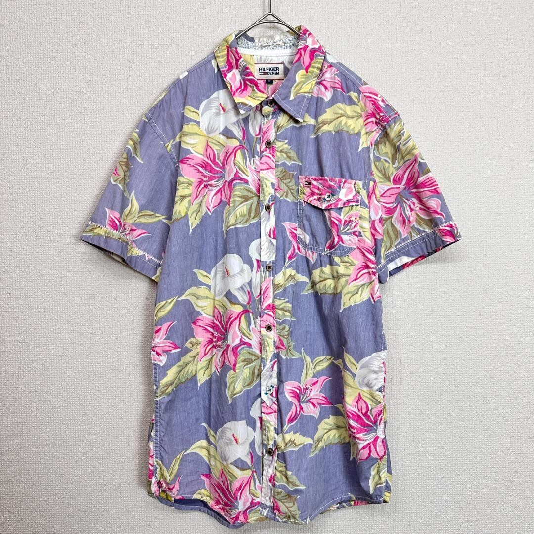 HILFIGER DENIM 半袖シャツ チェック 花柄 サイズM HR2067