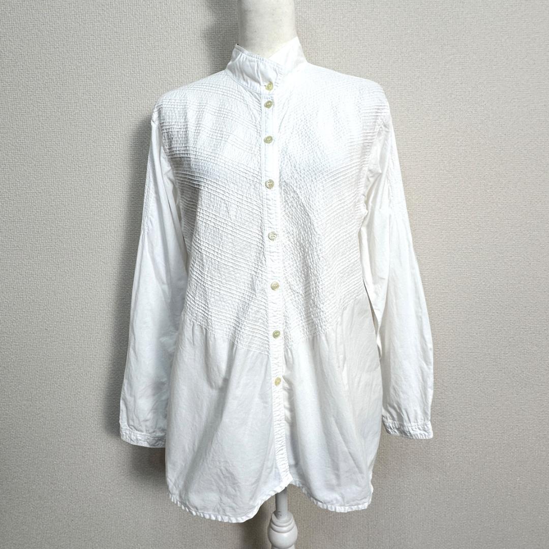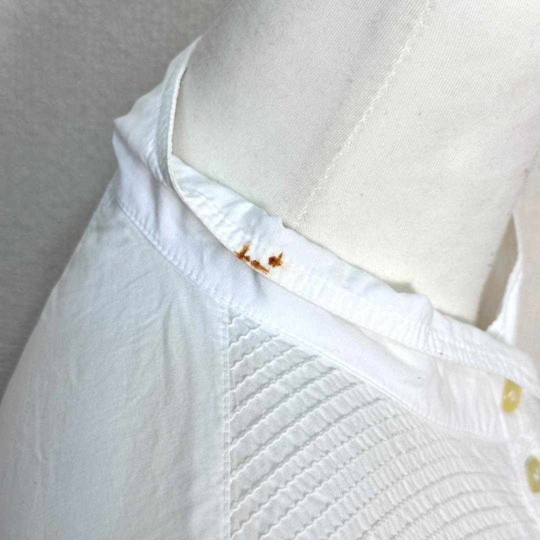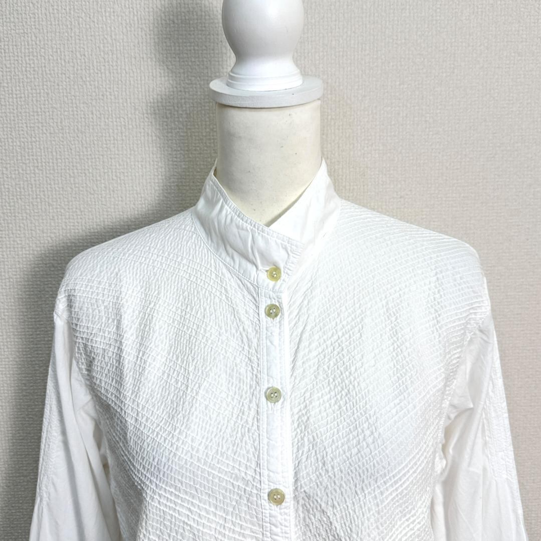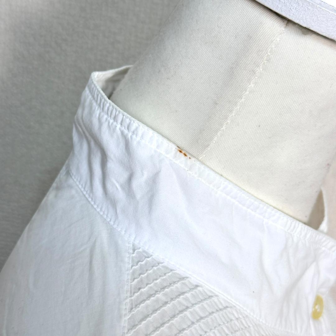 YACCO MARICARD(ヤッコマリカルド)のホワイトシャツです。立体感のある生地使いと、シンプルながら個性を感じさせるデザインが特徴。白シャツながら表情があり、1枚で着ても存在感のあるアイテムです。サイズ表記は3で、程よくゆとりのあるシルエット。※所々に汚れが見られますが、着用には支障のない範囲と考えられ、古着としてご理解いただける方におすすめです。