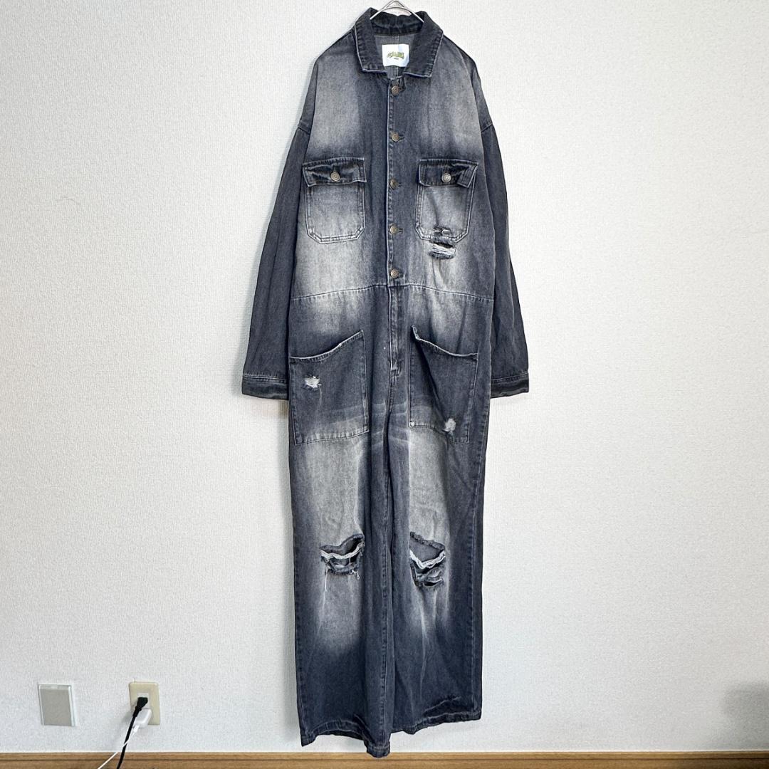 Wudge Boy ダメージつなぎ 黒デニム サイズL HR1963