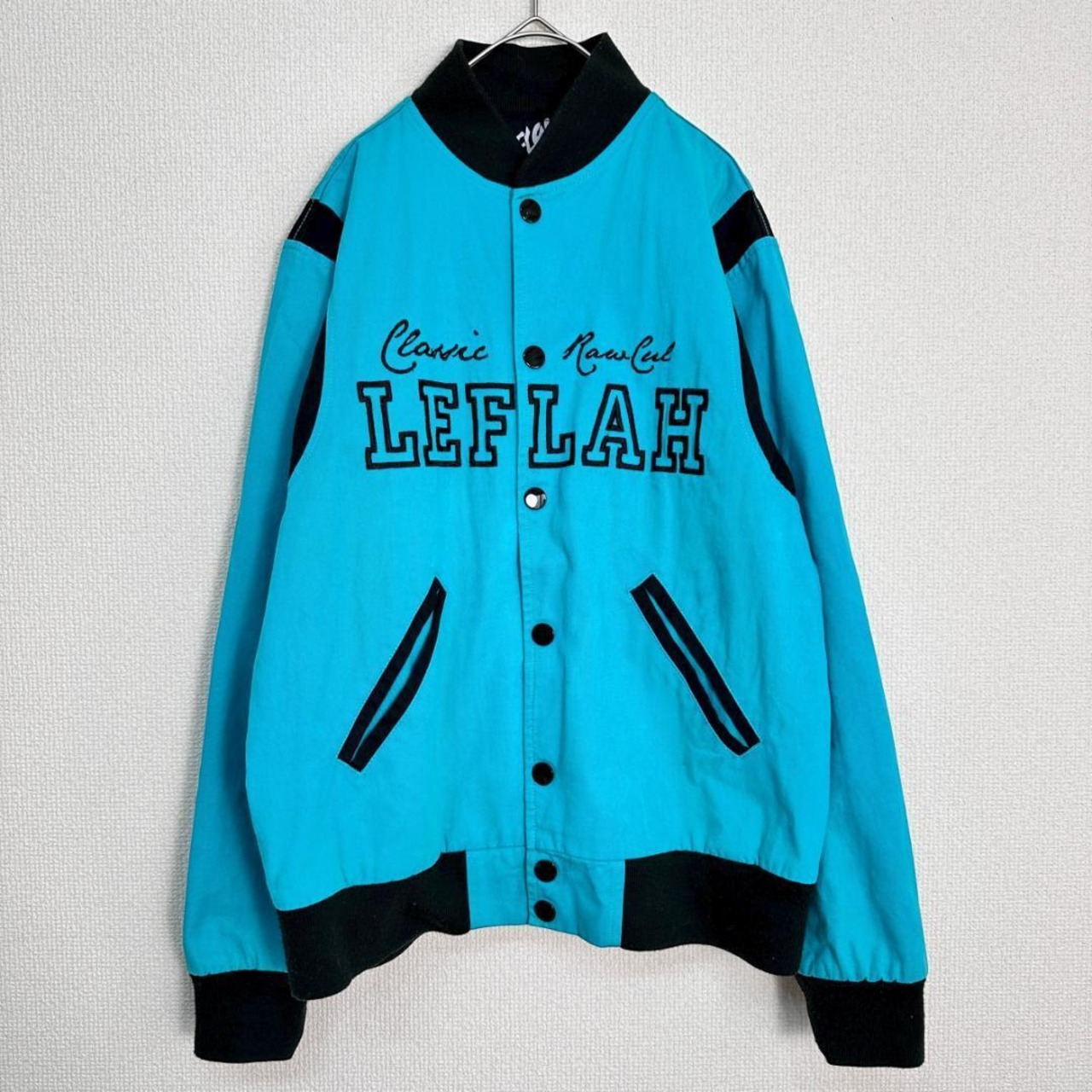 LEFLAH(レフラー)のジャケットです。落ち着きのあるグリーンカラーで、ストリート感のあるカジュアルな雰囲気が魅力の一着。シンプルながら存在感があり、デニムやワイドパンツとも相性良く着用できます。季節の変わり目のアウターとしても取り入れやすく、デイリー使いにおすすめです。