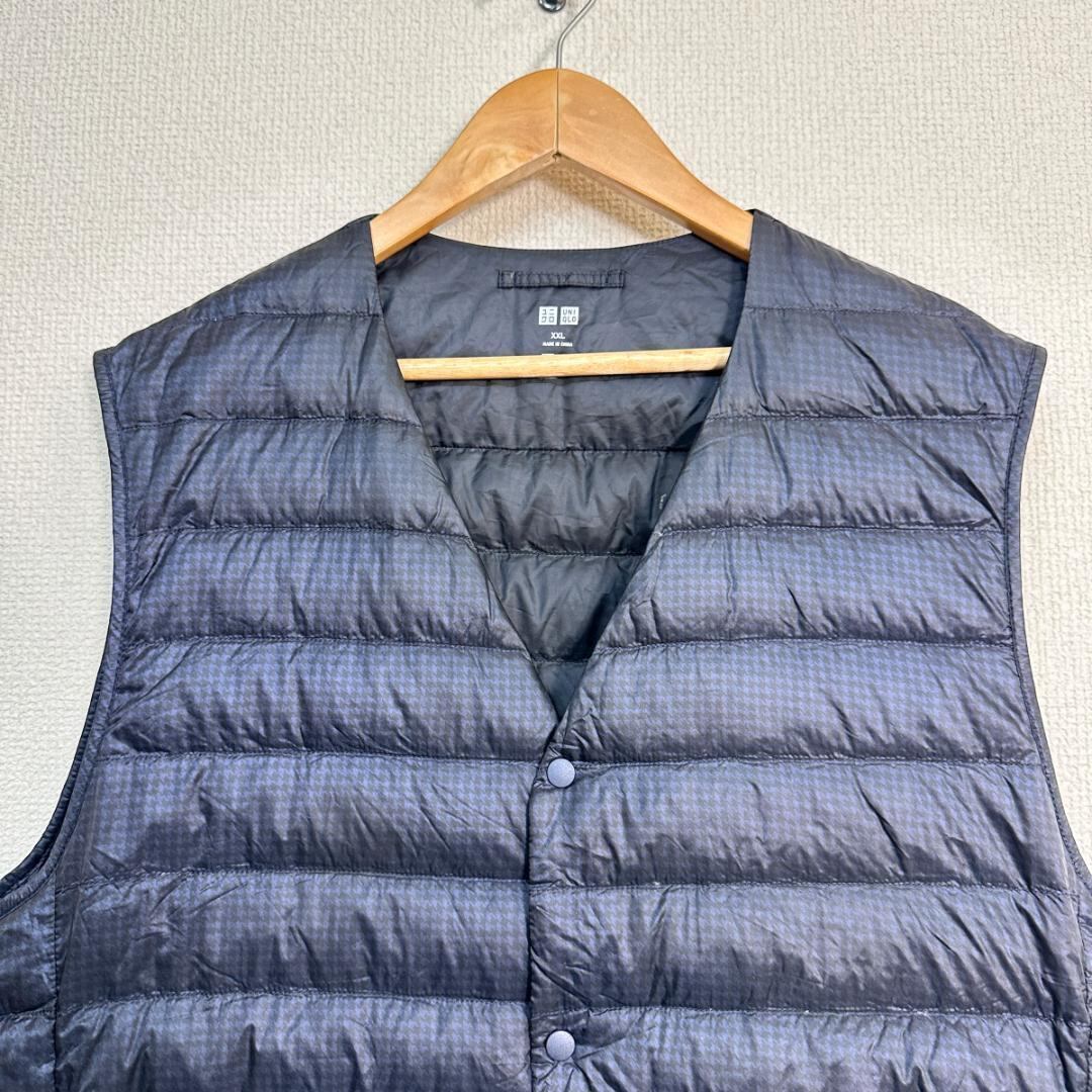 UNIQLO Vネックノースリーブジャケット チェック ネイビー サイズXXL HR1900