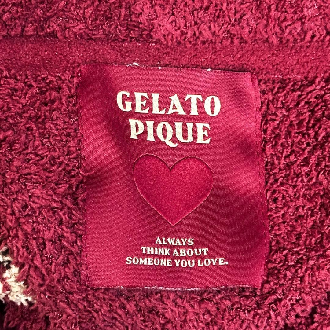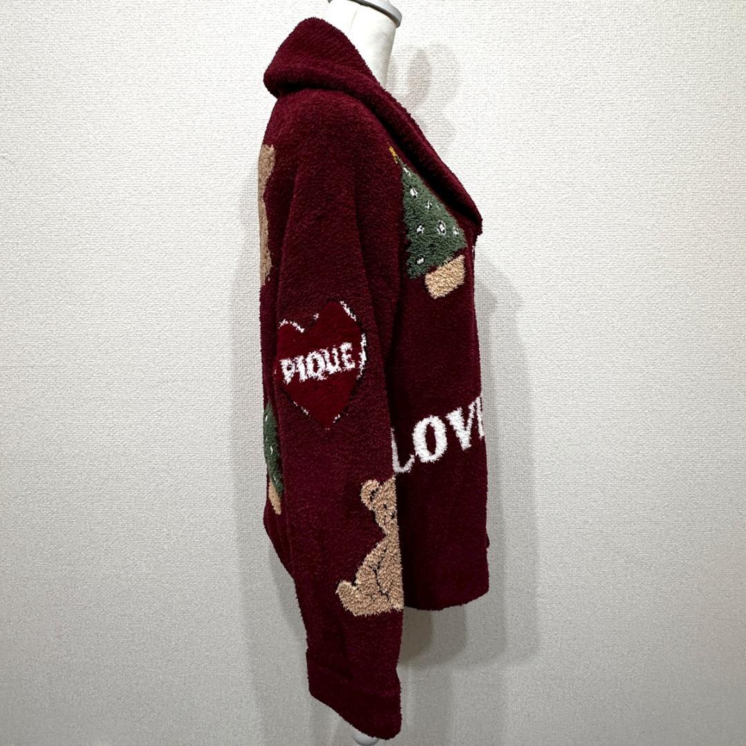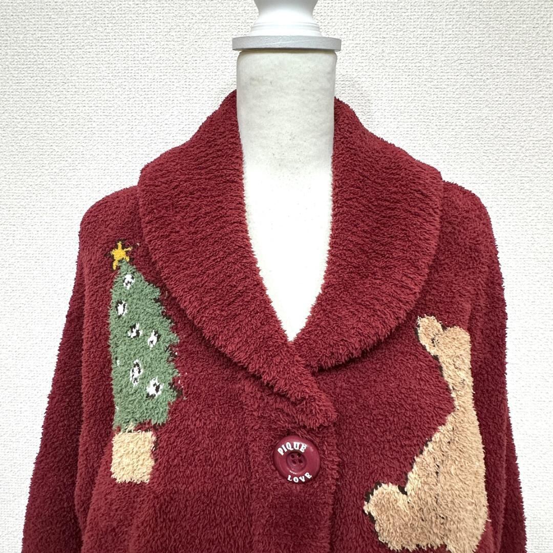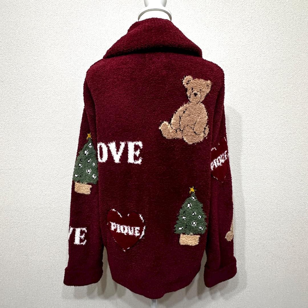 GELATO PIQUE(ジェラート ピケ)のクリスマスデザインのルームウェアです。ボルドーカラーで季節感があり、やわらかな雰囲気が魅力の一着。リラックスタイムにぴったりの着心地で、おうち時間やギフトシーズンにもおすすめです。ゆったりとしたシルエットで、快適に着用いただけます。一般的な中古品として、着用や保管に伴うわずかな使用感が見られる場合があります。