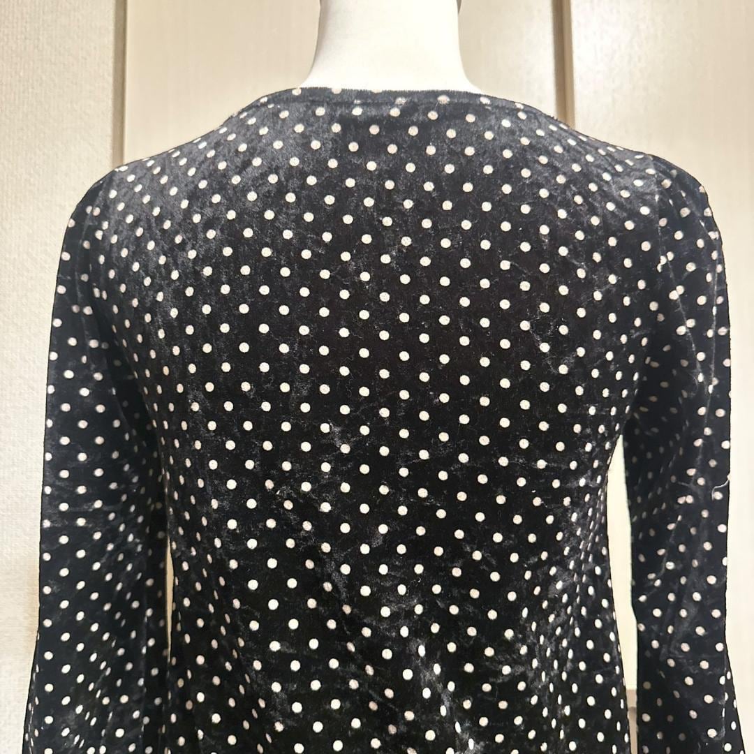 MILK のベロア水玉ワンピースです。柔らかなベロア素材にドット柄が可愛らしく、ガーリーな雰囲気を演出します。ブラックカラーで甘くなりすぎず、季節を問わず着用できるアイテムです。サイズ表記はありませんが、平置き寸法を参考にご検討ください。