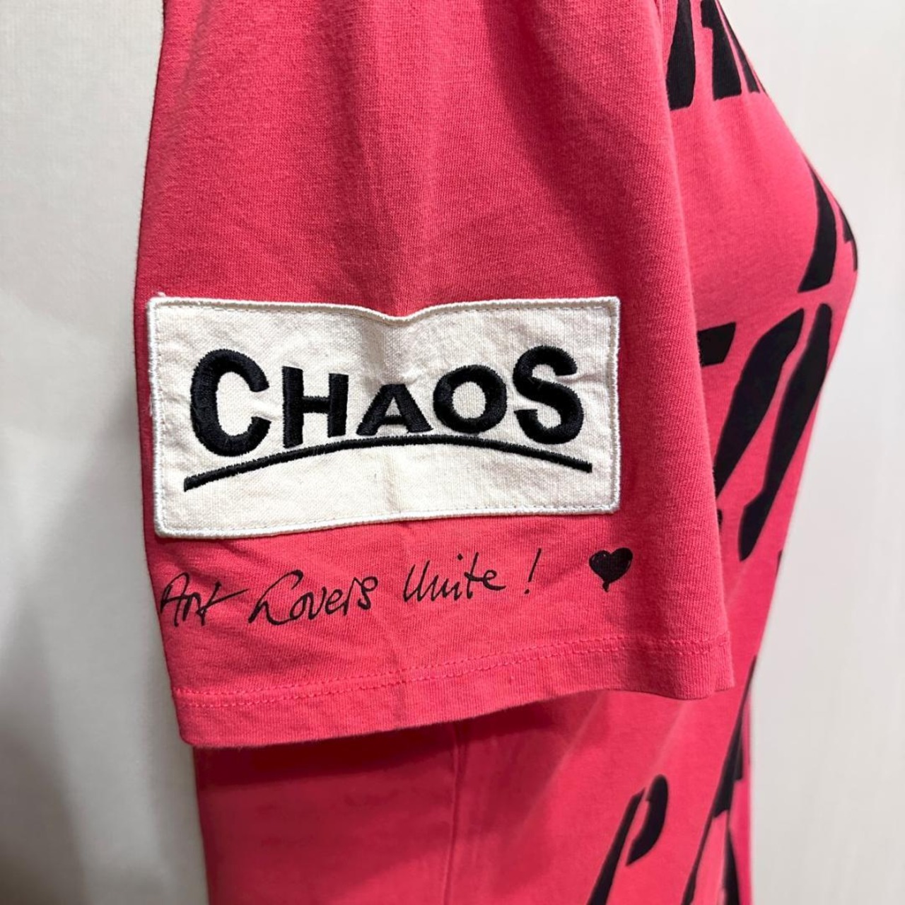 鮮やかなピンクカラーに個性的なデザインが映える一枚。柔らかい素材感で着心地も良く、デイリーにもコレクションにもおすすめです。