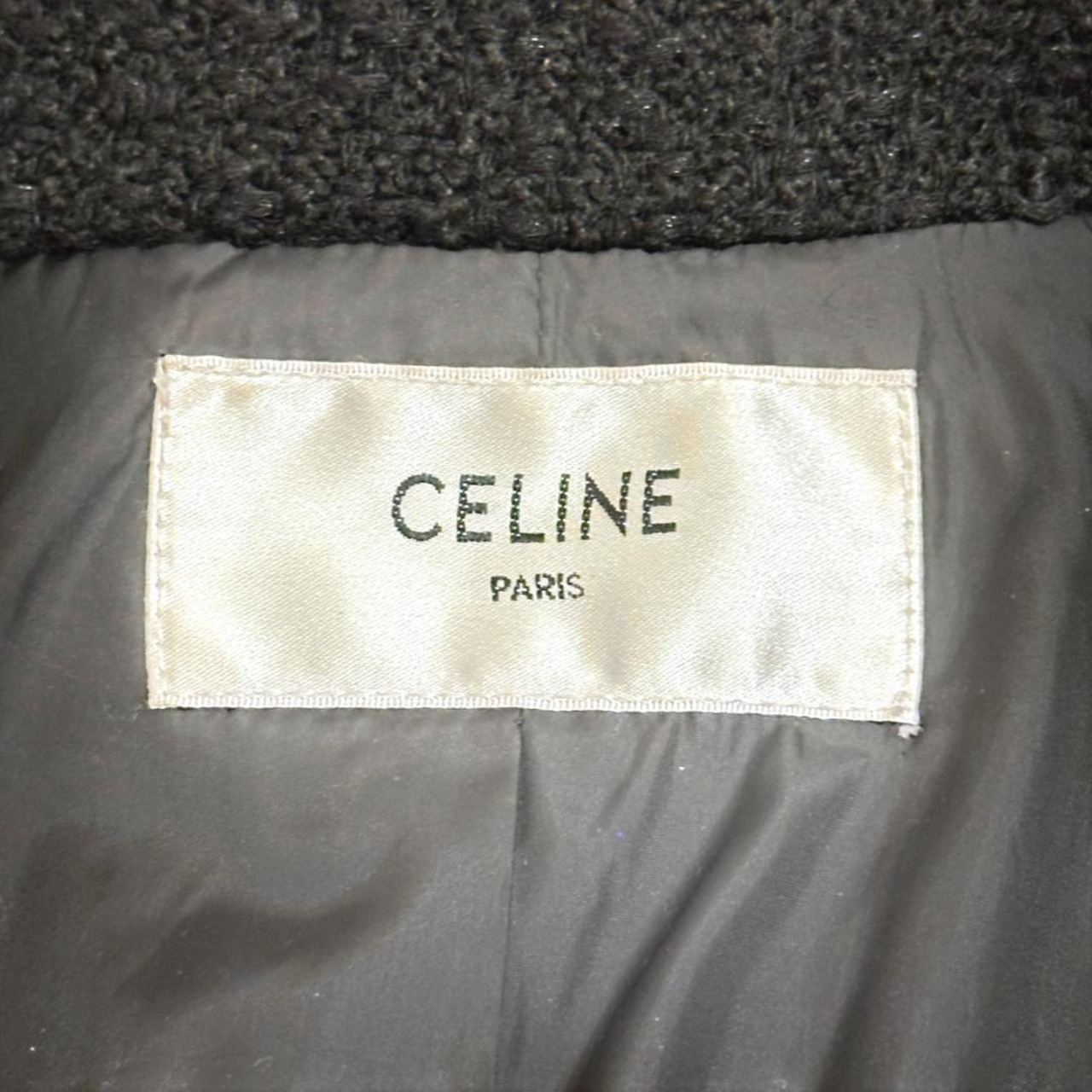 CELINE(セリーヌ)の黒コート。シンプルで上品なデザインが特徴で、フォーマルからカジュアルまで幅広く活躍。高品質な素材で着心地も良く、美しいシルエットを演出します。