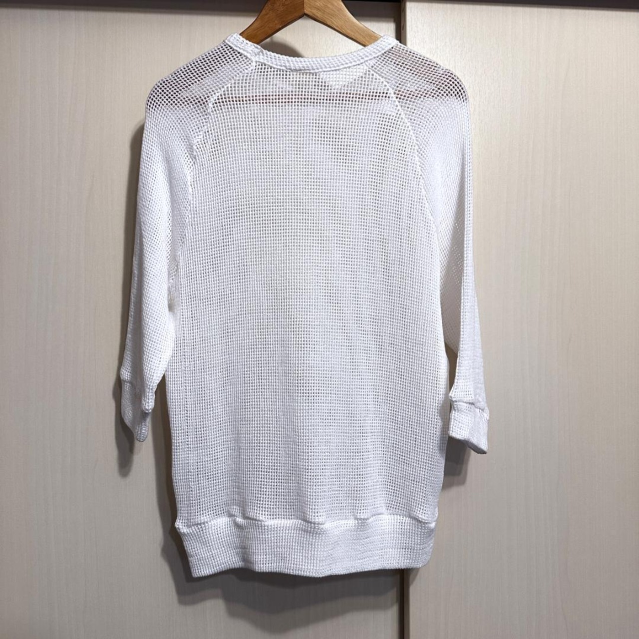 Ron Herman(ロンハーマン)の7分丈網シャツです。軽やかな網素材で通気性が良く、春夏のレイヤードスタイルに最適。ホワイトカラーで爽やかさを演出し、カジュアルからきれいめまで幅広く活用できる一枚です。