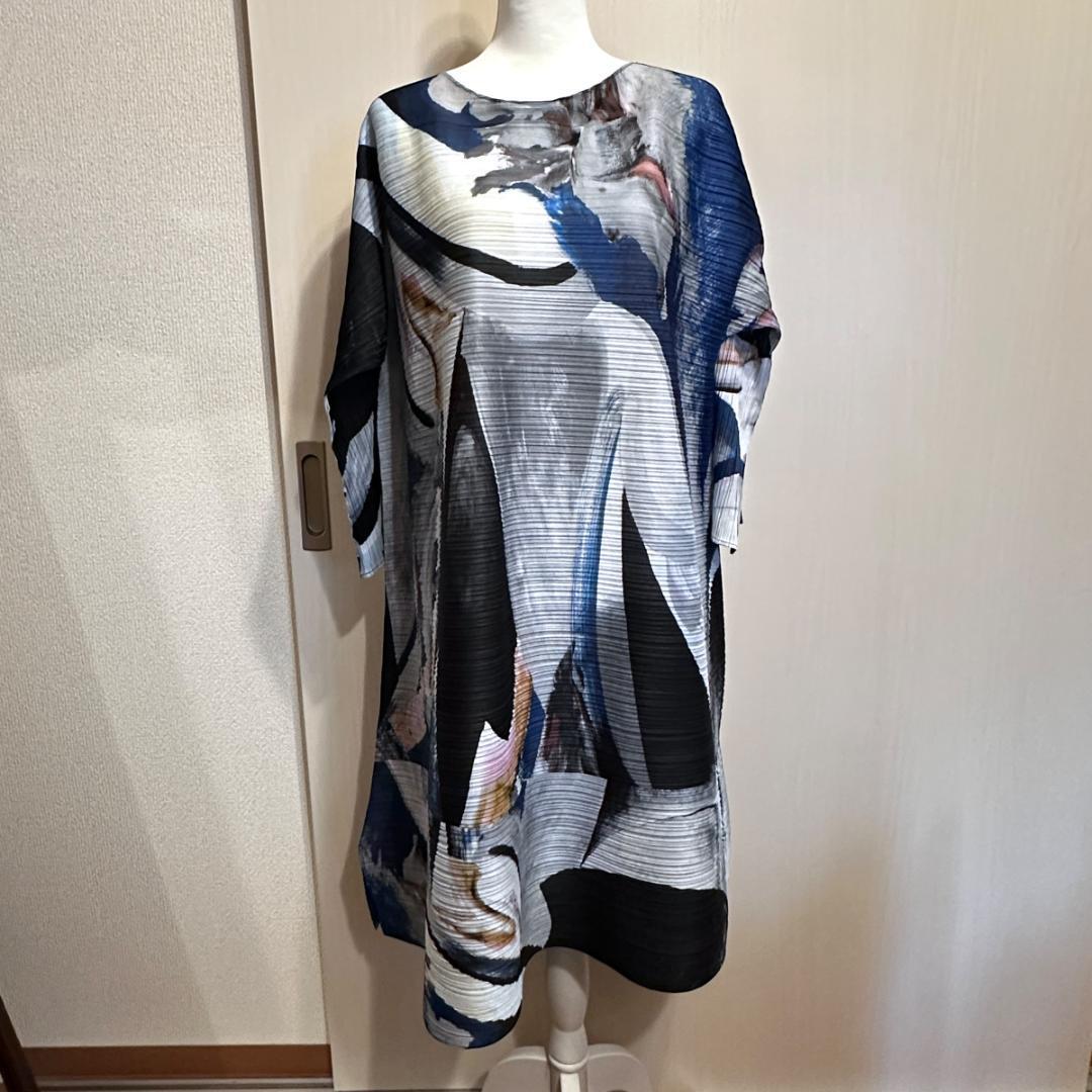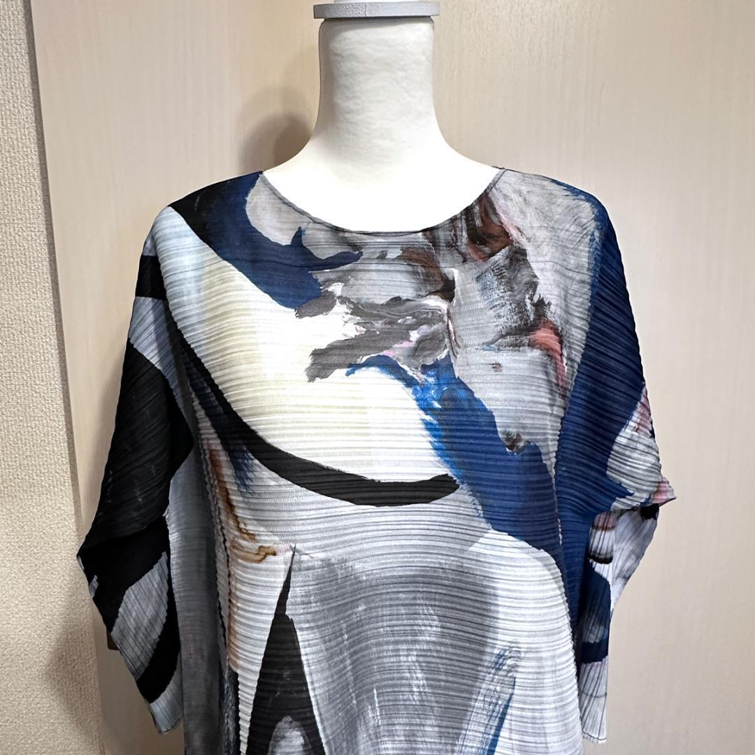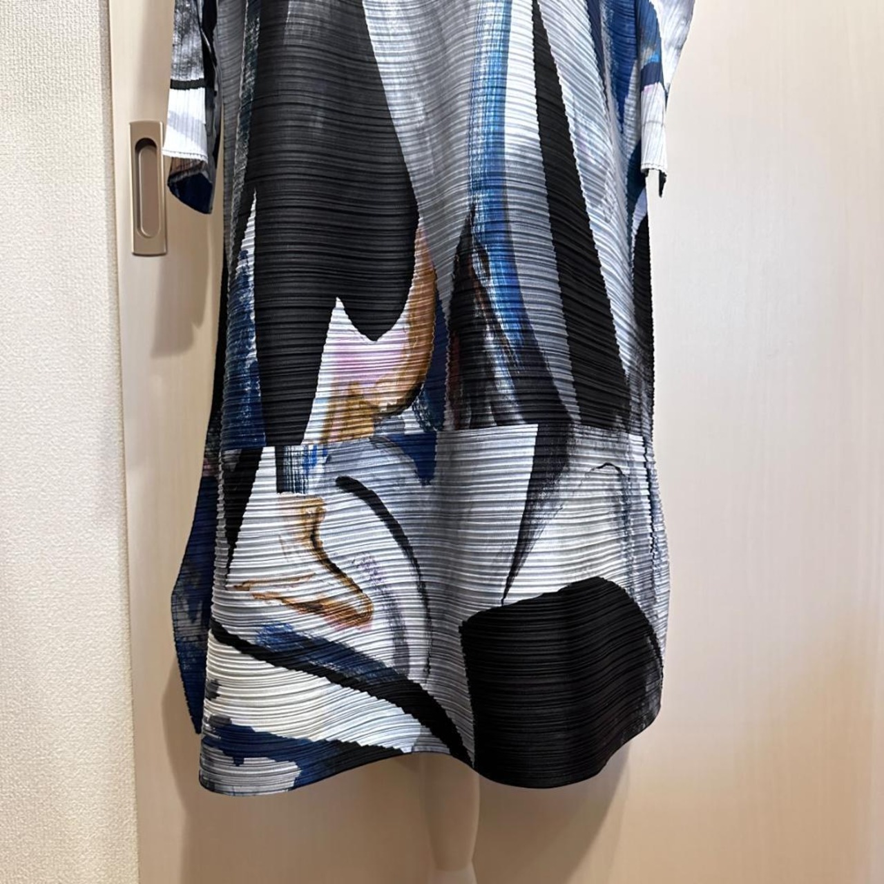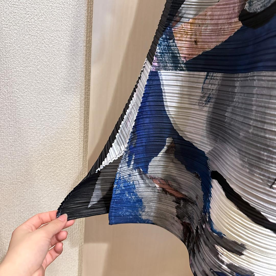ISSEY MIYAKEの人気ライン PLEATS PLEASE より、「MUSA」シリーズのワンピース。水墨画のような抽象的なタッチで描かれたアート感あふれるプリントが特徴です。