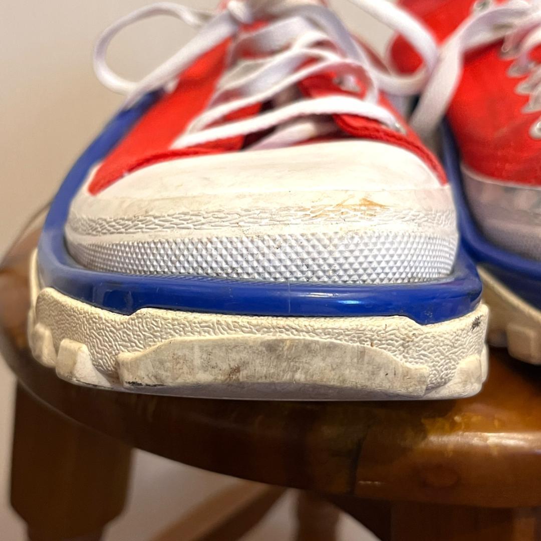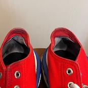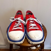レッド、ホワイト、ブルーの鮮やかなカラーブロックが目を引く個性的なデザイン。