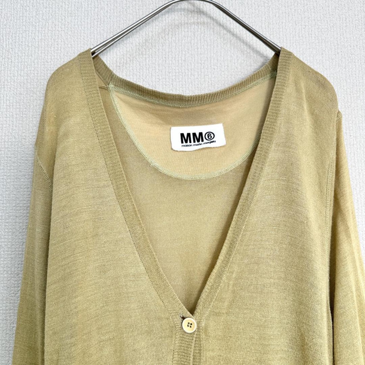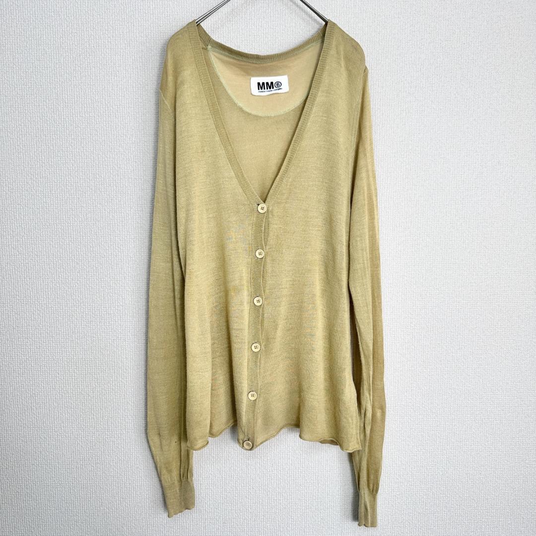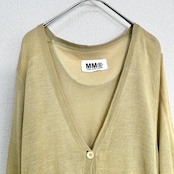 MM6のカーディガンです。鮮やかなイエローカラーが目を引く一着で、コーディネートの主役にもなるアイテム。シンプルなデザインながら、ブランドらしい洗練された雰囲気が感じられます。