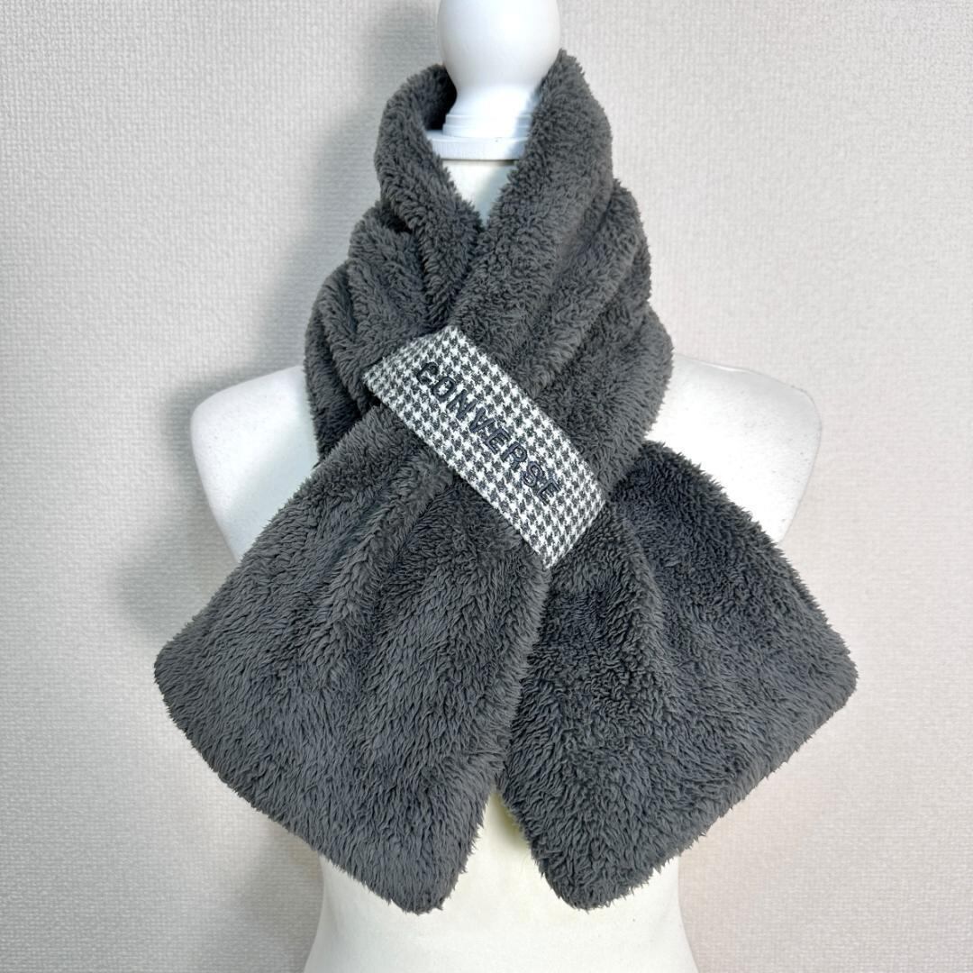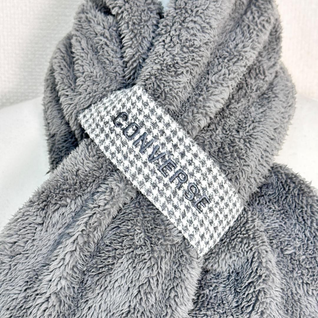 CONVERS(コンバース)のボアマフラーです。やわらかなボア素材で、首元を優しく包み込んでくれるあたたかみのあるアイテム。落ち着いたグレーカラーで、カジュアルからスポーティーなコーディネートまで幅広く合わせやすいデザインです。秋冬シーズンの防寒対策として重宝する一品です。