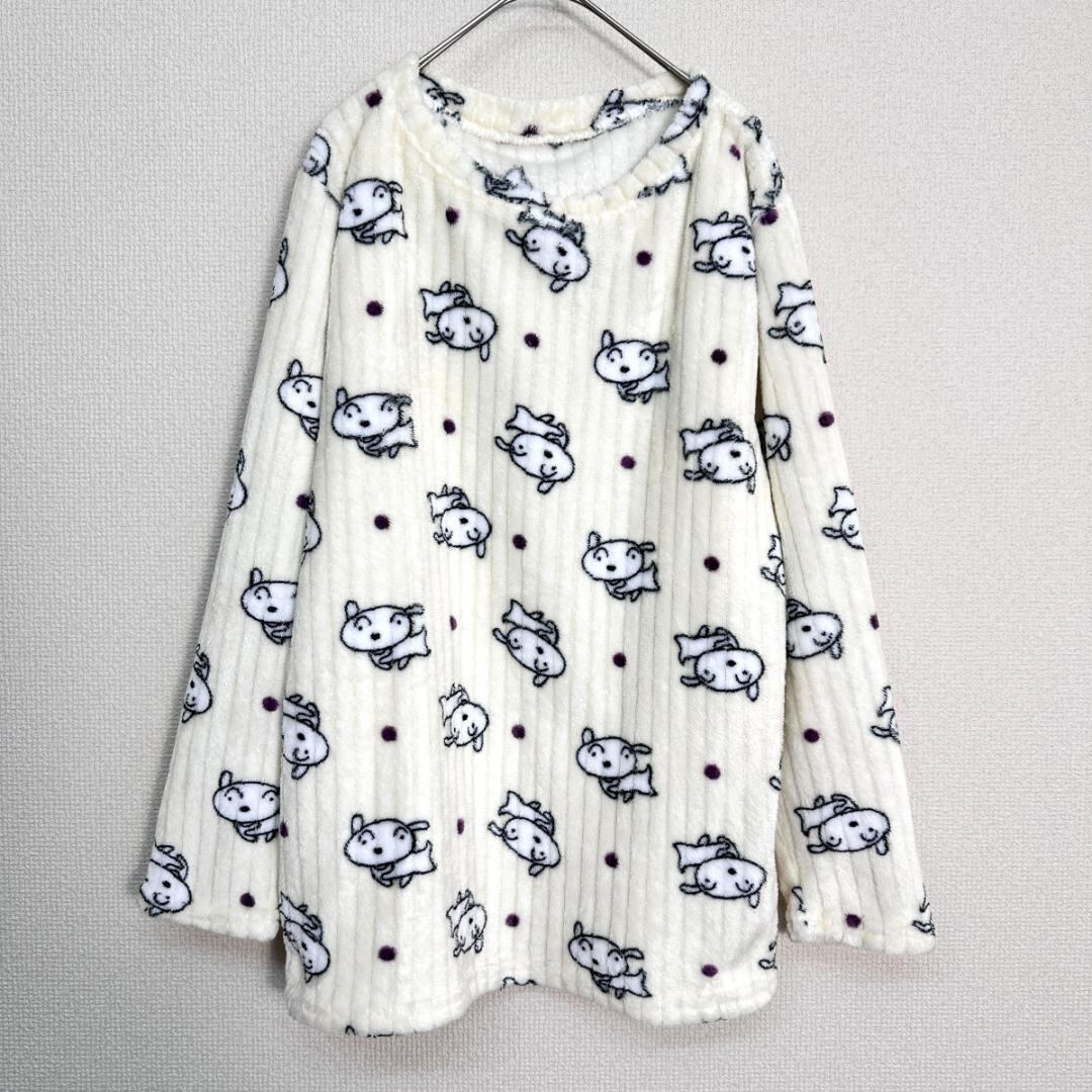クレヨンしんちゃんデザインのパジャマです。ベージュカラーをベースに、キャラクターデザインがアクセントになった可愛らしい一着。リラックスタイムやルームウェアとして活躍するアイテムです。やわらかな印象のカラーで、普段使いしやすいデザインとなっています。