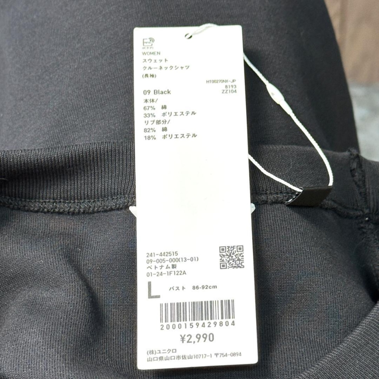 【新品タグ付き】UNIQLO U スウェット 黒 サイズL 色褪せあり HR2254