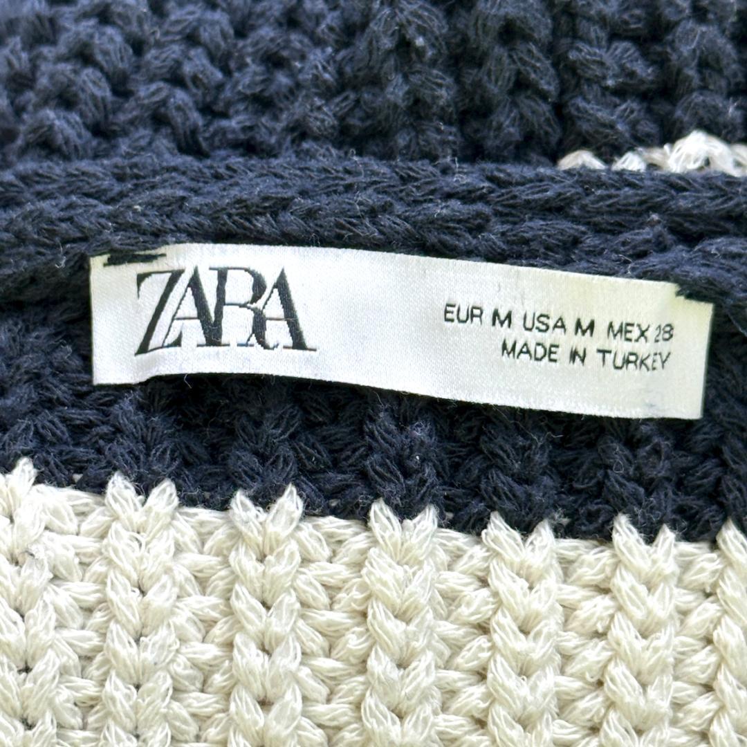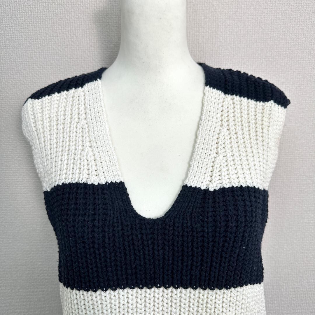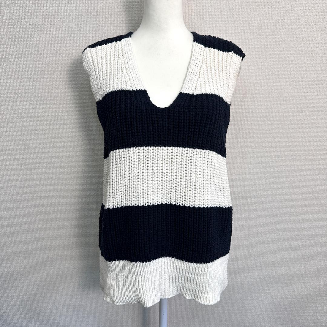 ZARA ボーダーニットベスト ネイビー×白 サイズM HR1842