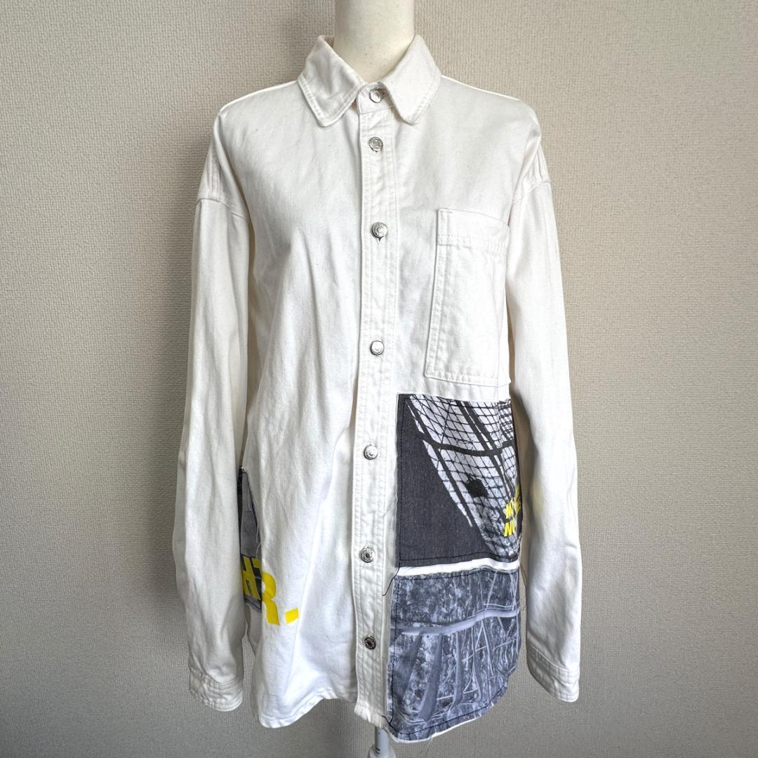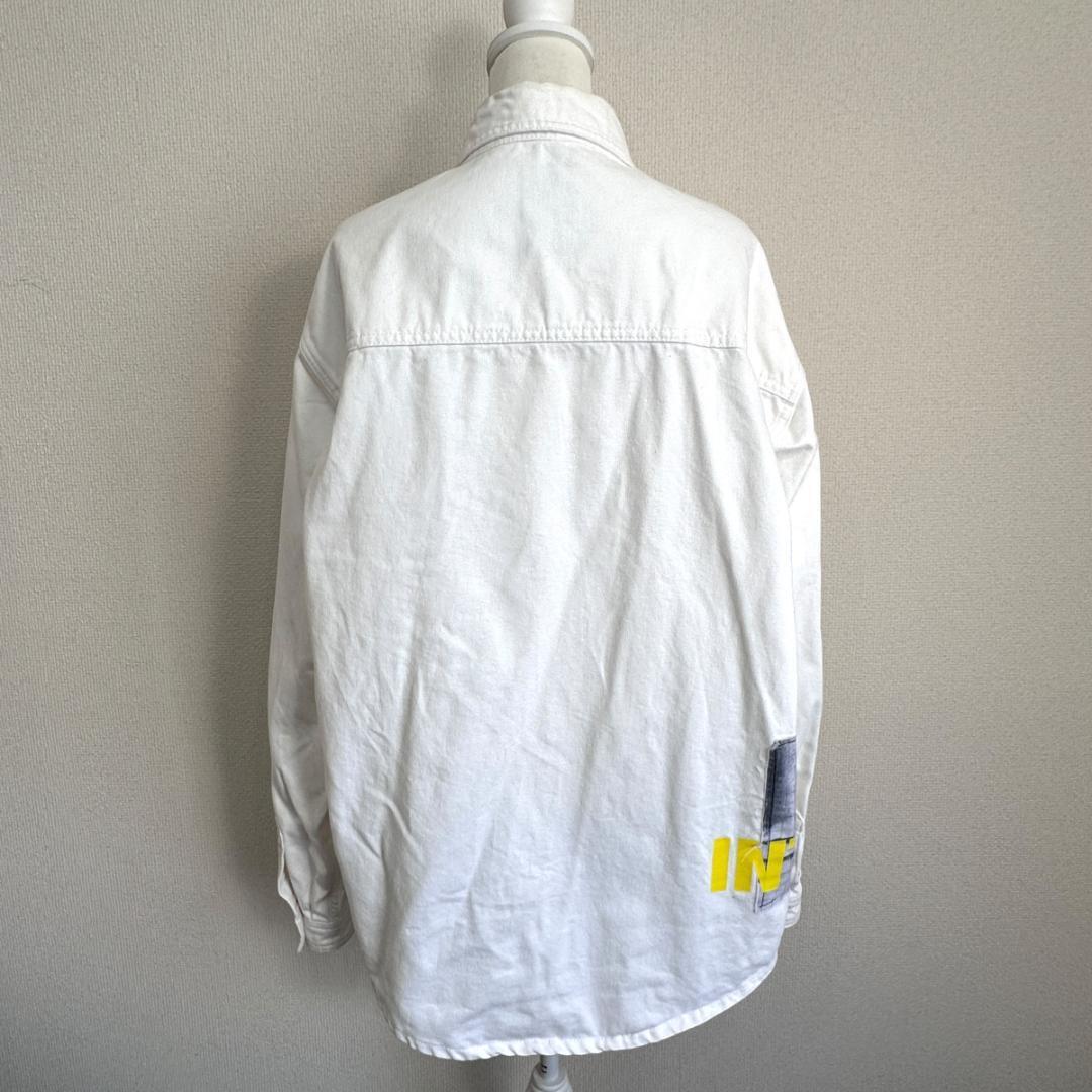 ZARA(ザラ)のシャツです。ホワイトカラーのクリーンな印象に、「INTR CHTR.」のデザインがアクセントになった一着。シンプルながらも程よく存在感があり、カジュアルからストリート寄りのスタイルまで幅広く合わせやすいアイテムです。一枚着としてはもちろん、羽織りとしても活躍します。