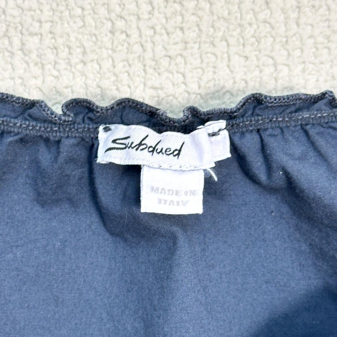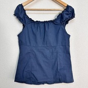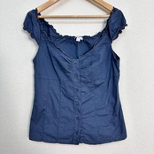 Subdued(サブデュード)のネイビーカラー・ノースリーブトップスです。シンプルで合わせやすい落ち着いた色味と、軽やかなノースリーブデザインで、夏は一枚でもインナーとしても活躍する一着。カジュアルなデイリースタイルから、ジャケットやシャツとのレイヤードまで幅広いコーディネートに対応します。一般的な中古品として、使用感がある場合があります。