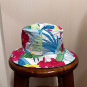 PARISの熱帯地方柄ハットです。リゾート感のある個性的な柄が特徴で、コーディネートのアクセントとして活躍するアイテム。カジュアルスタイルはもちろん、夏のスタイリングにもおすすめです。