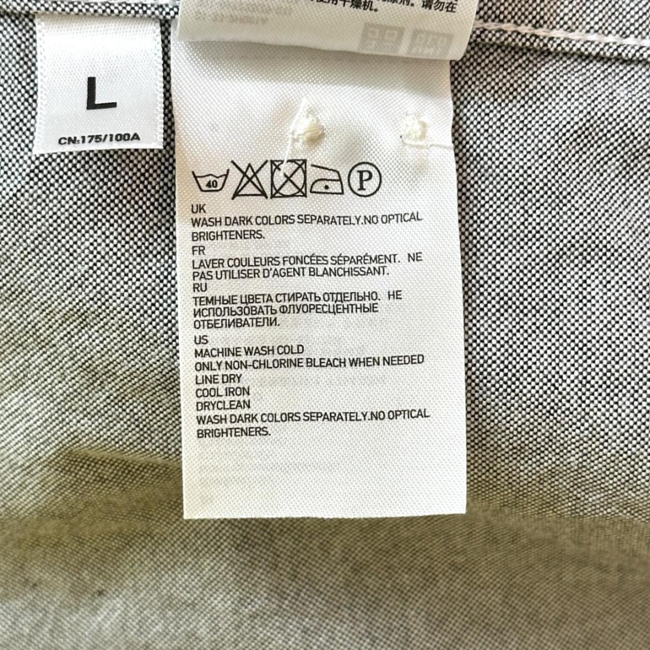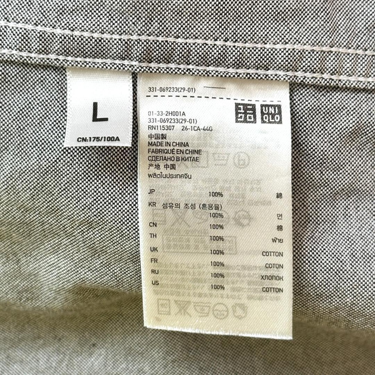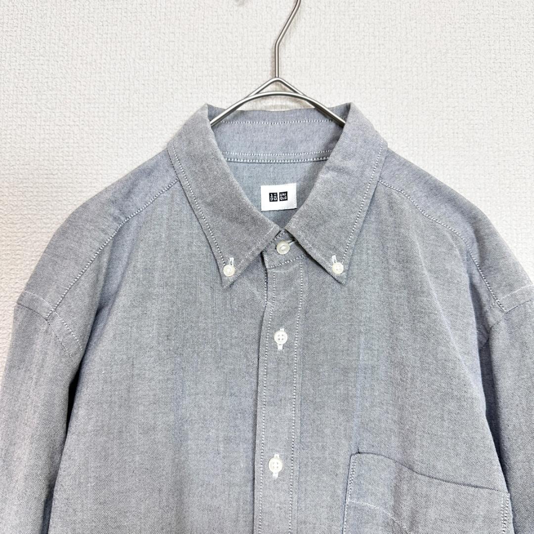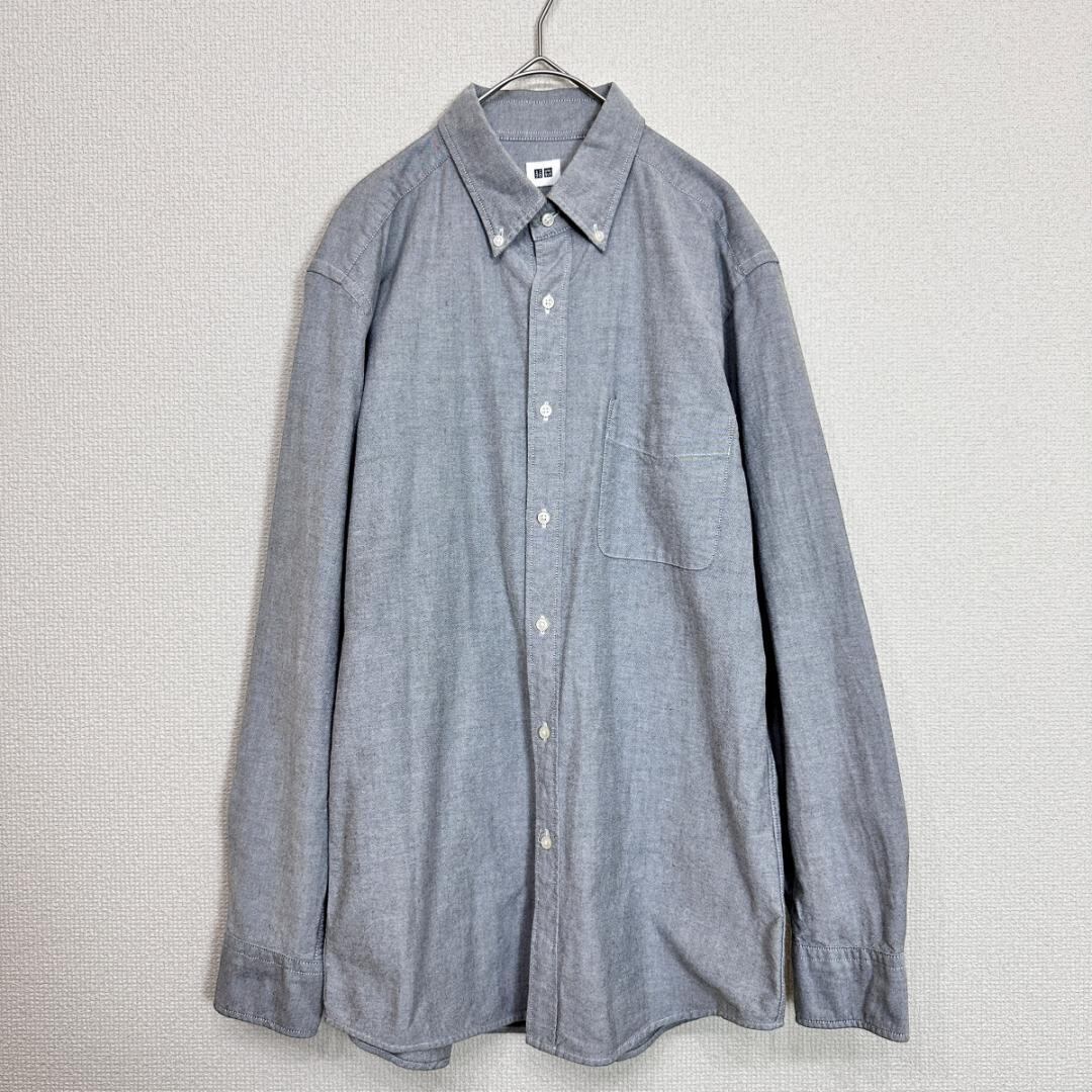 UNIQLOの水色シャツです。爽やかなライトブルーカラーが印象的で、清潔感のあるスタイリングに仕上がる一着。