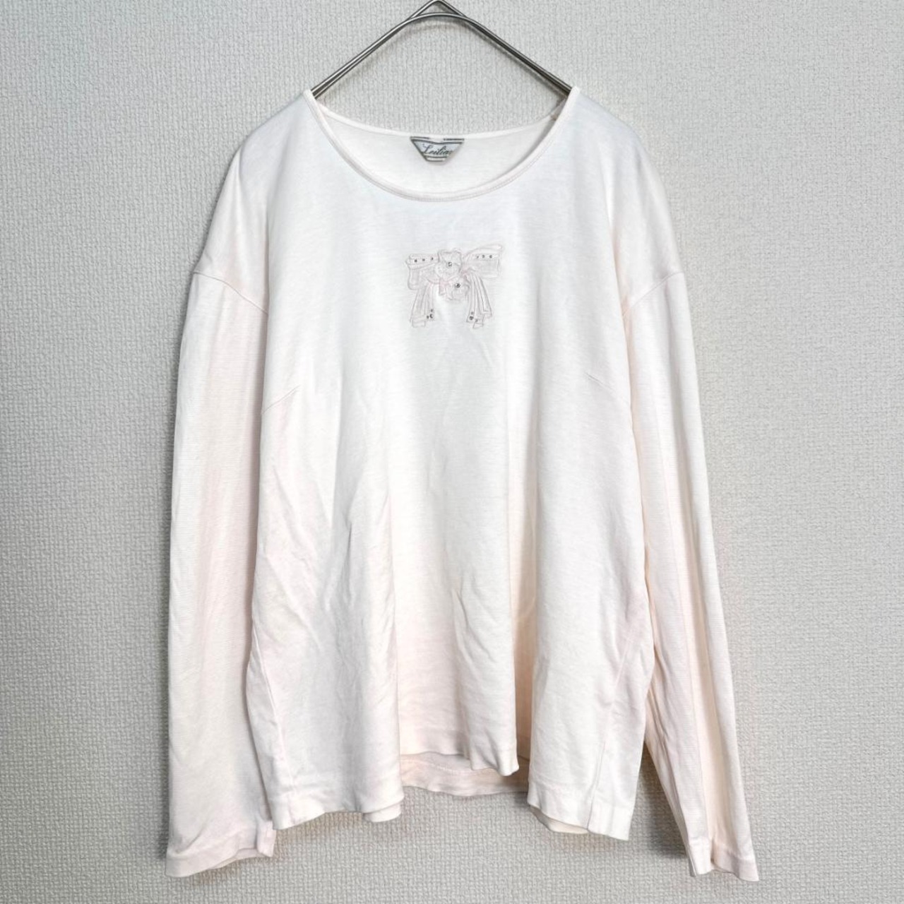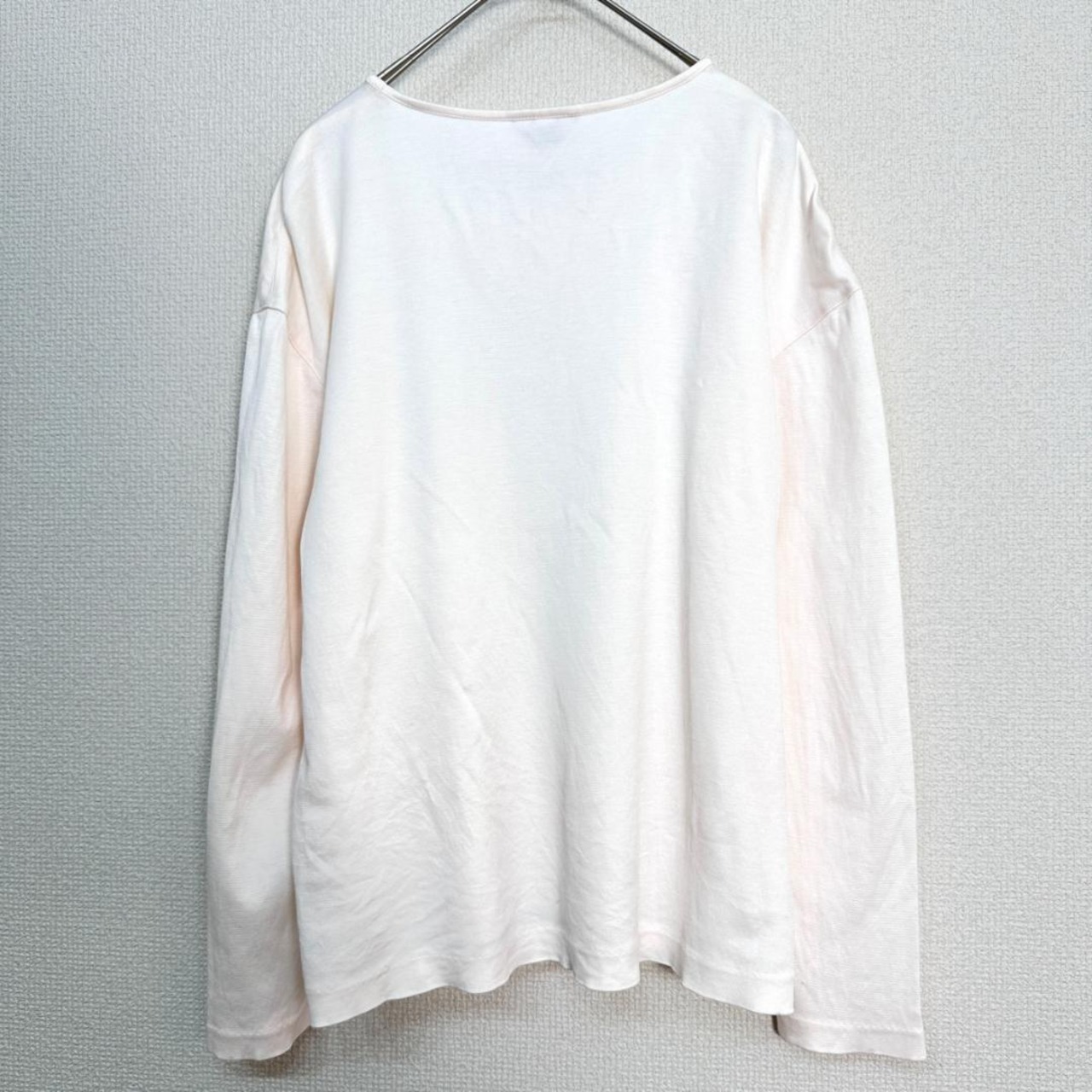 Leilian(レリアン)のペールピンクカラーのカットソーです。やさしい色合いで、上品さと女性らしさを感じられる一着。シンプルなデザインのため、ジャケットやカーディガンのインナーとしても使いやすく、きれいめからカジュアルまで幅広いコーディネートに対応します。落ち着いた印象で、大人のデイリースタイルに取り入れやすいアイテムです。中古品のため、一般的な使用感がある場合があります。