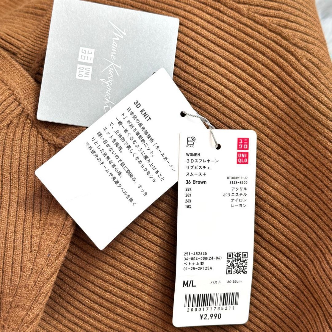 【タグ付き】UNIQLO リブビスチェ ブラウン サイズM/L HR1948