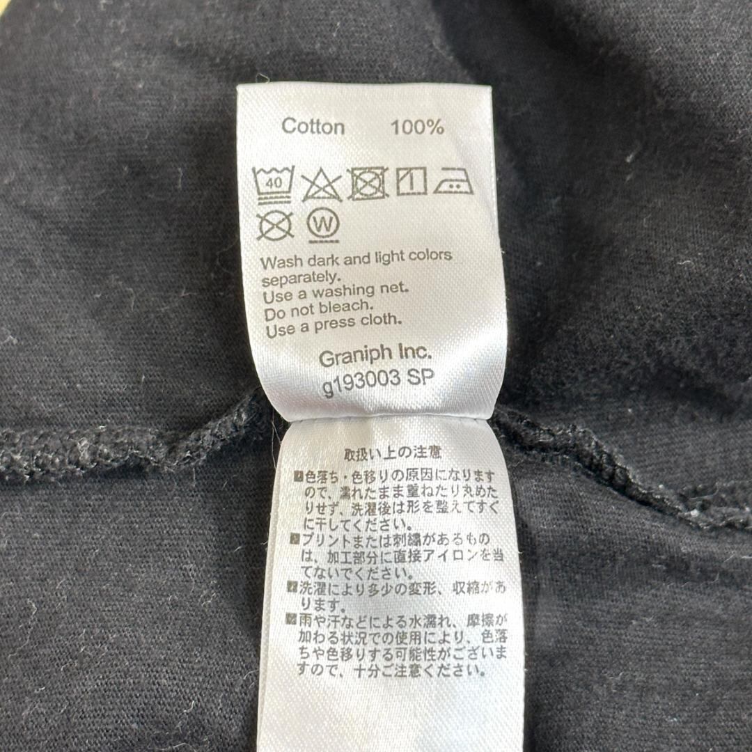 graniph(グラニフ)のブラックカラーTシャツです。シンプルで合わせやすいデザインのため、デイリーコーデに取り入れやすい一着。程よい厚みのTシャツ素材で、1枚着としてはもちろん、インナー使いにも活躍します。中古品のため、一般的な使用感がある場合があります。
