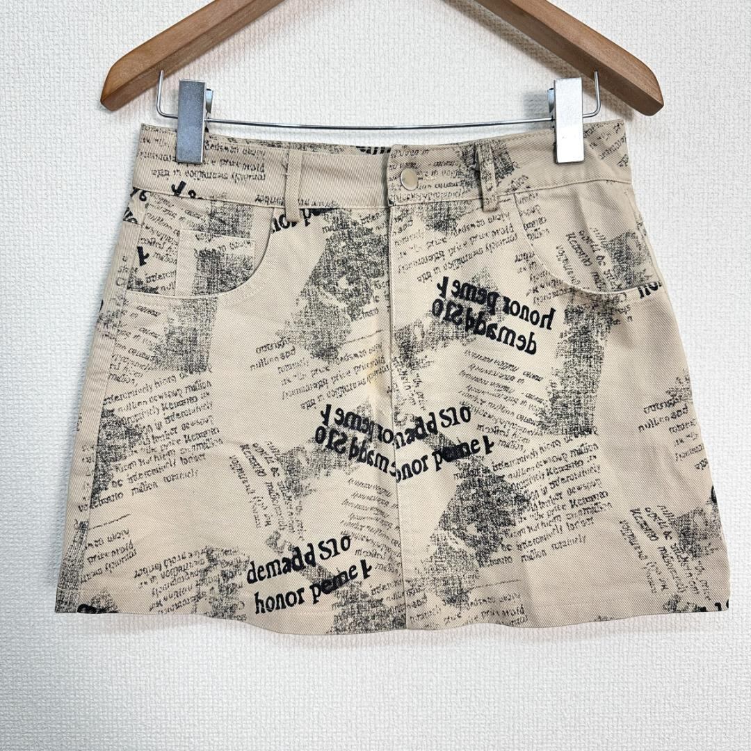 スカート ベージュ 英字柄 サイズ表記・タグなし HR1969