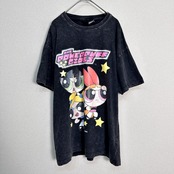 ROMWEのパワーパフガールズデザインTシャツです。ブラックボディにキャラクタープリントが映える一着で、ストリートやカジュアルスタイルのアクセントとして活躍します。ややゆとりのあるシルエットで、1枚着としてはもちろん、レイヤードスタイルにも取り入れやすいアイテムです。中古品のため、一般的な使用感がある場合があります。