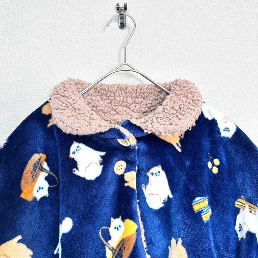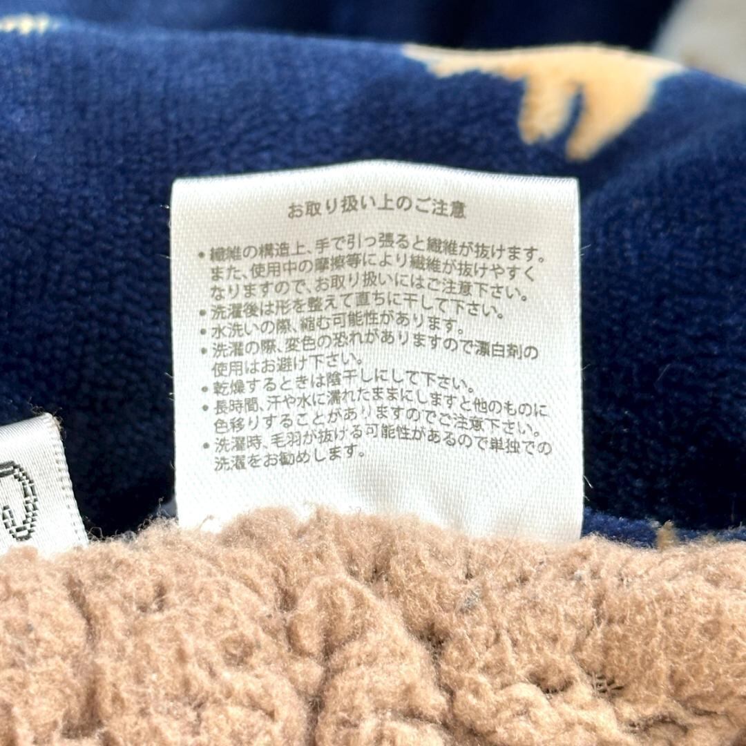 犬柄が目を引くボア素材のポンチョです。ブラウンカラーをベースにしたあたたかみのあるデザインで、リラックス感のある雰囲気。ふんわりとしたボア素材で、秋冬シーズンの防寒アイテムとして活躍します。羽織るだけでコーディネートのアクセントになり、室内外問わず使いやすい一着です。