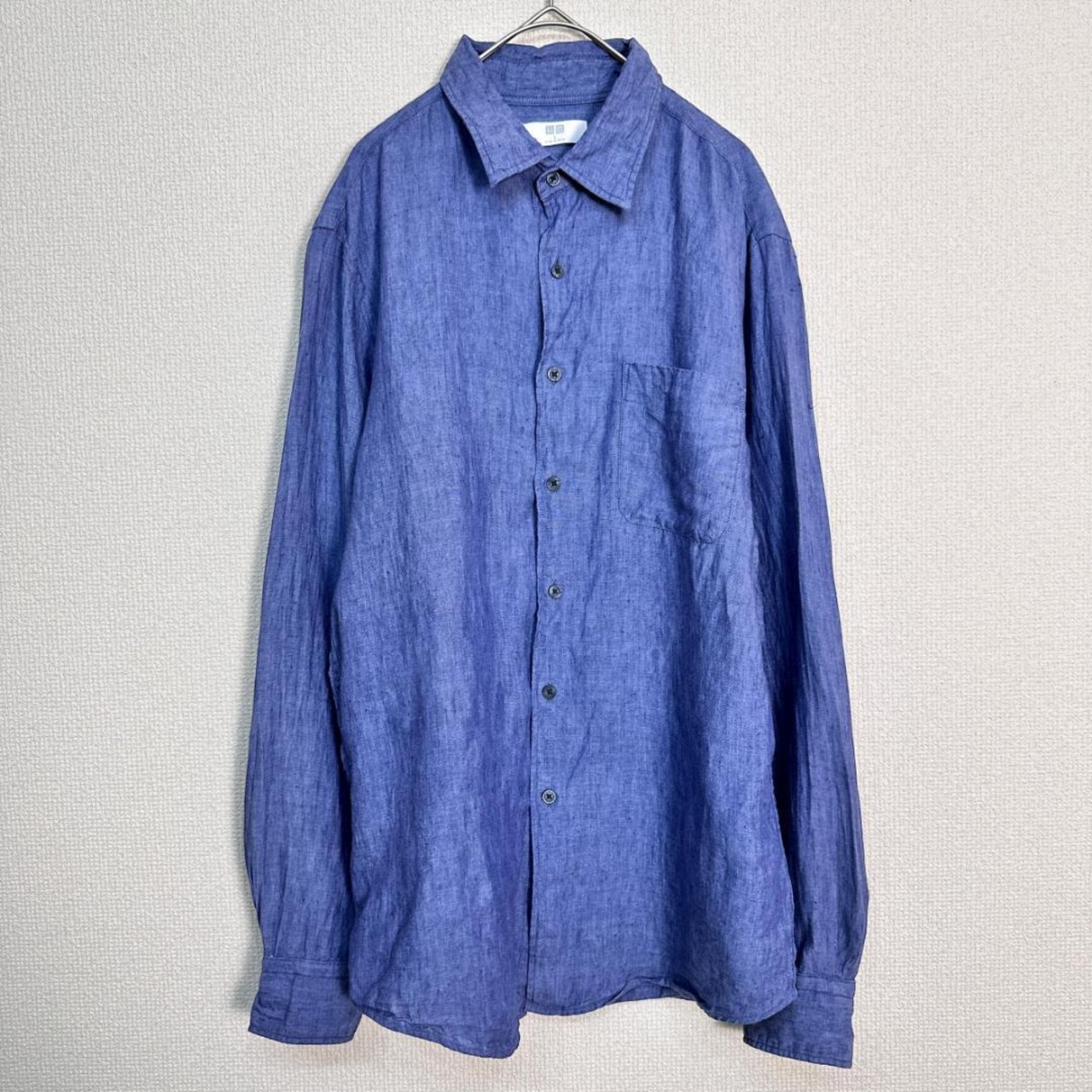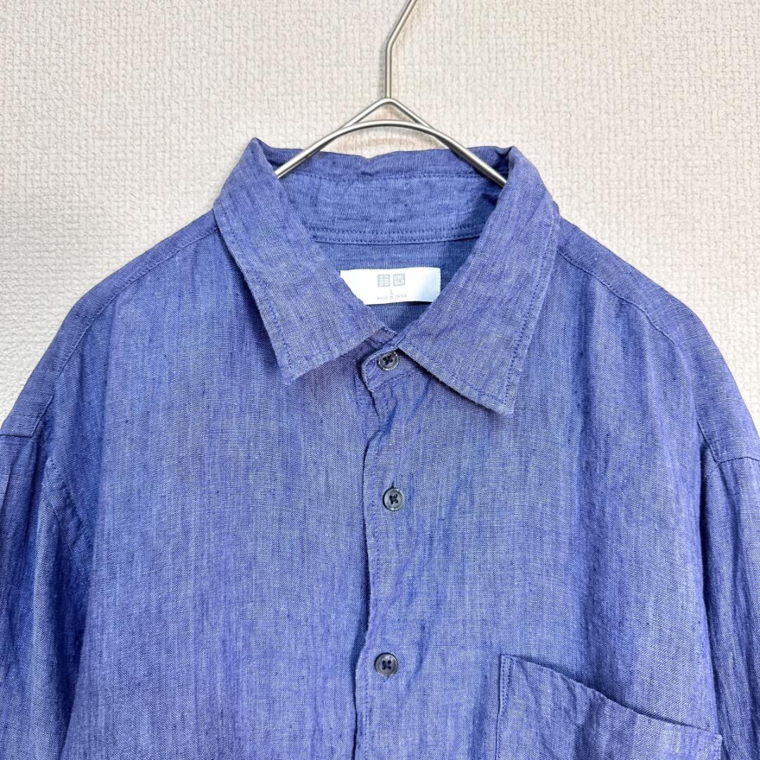 UNIQLO リネンシャツ 青 サイズL HR1983