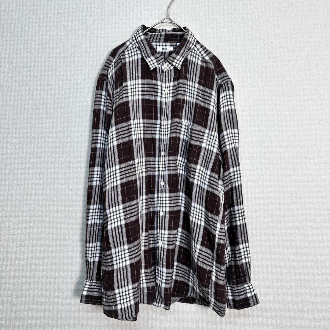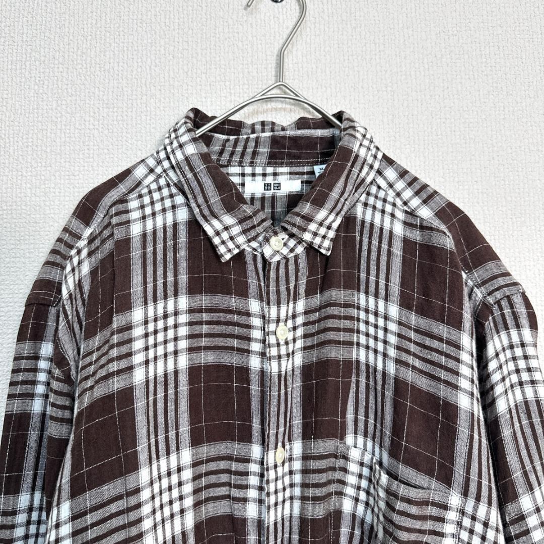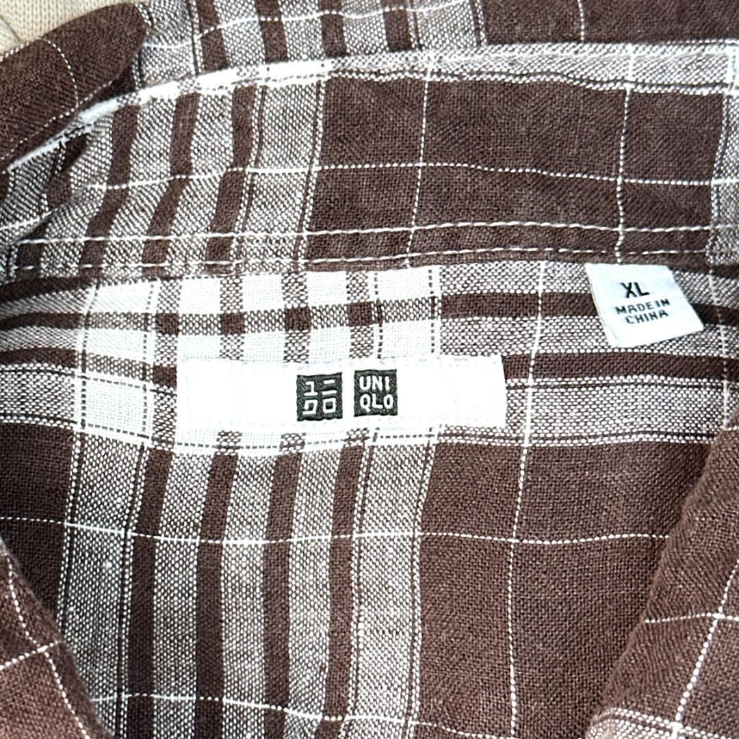 UNIQLO リネンシャツ チェック ブラウン サイズXL HR1985