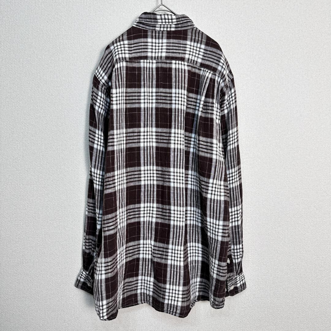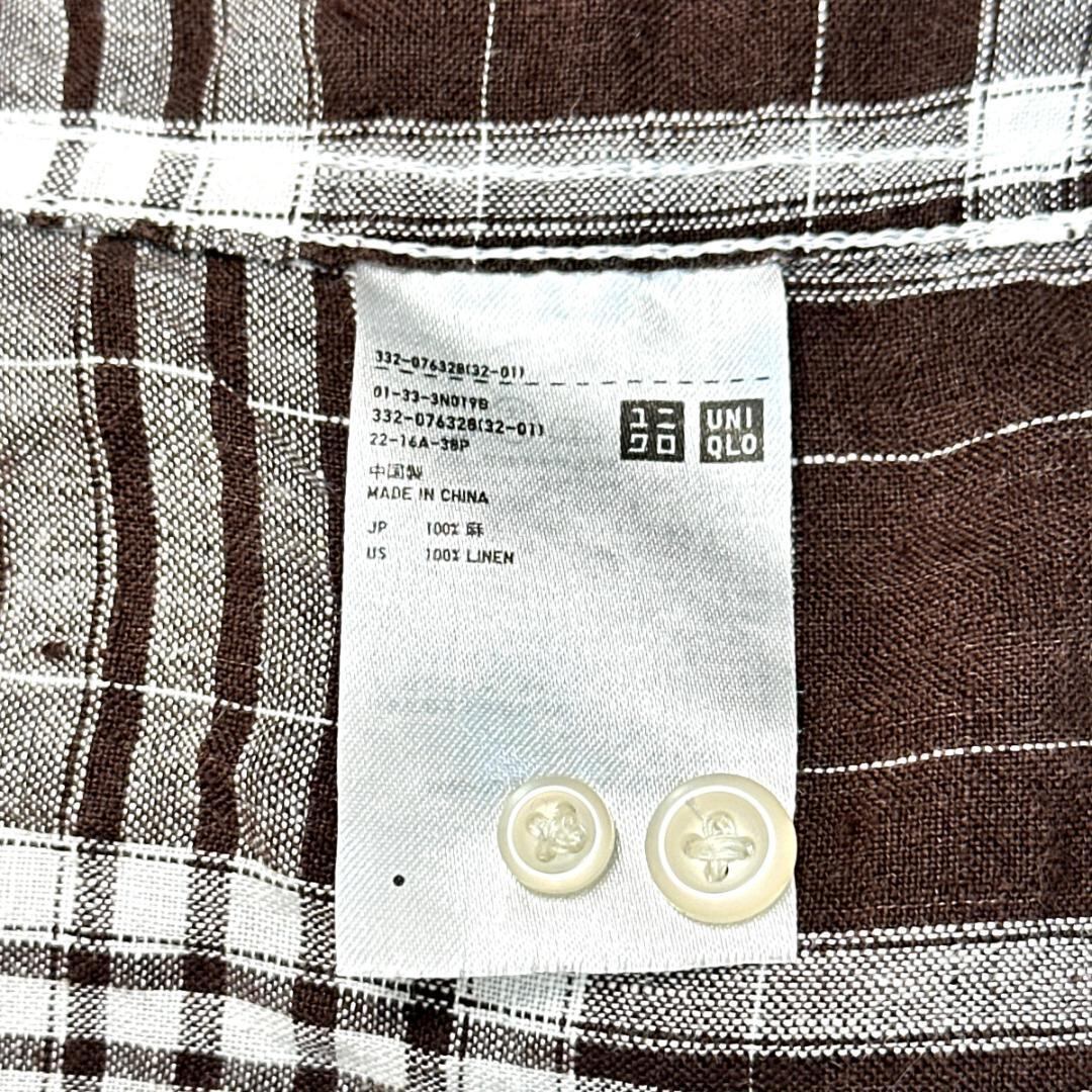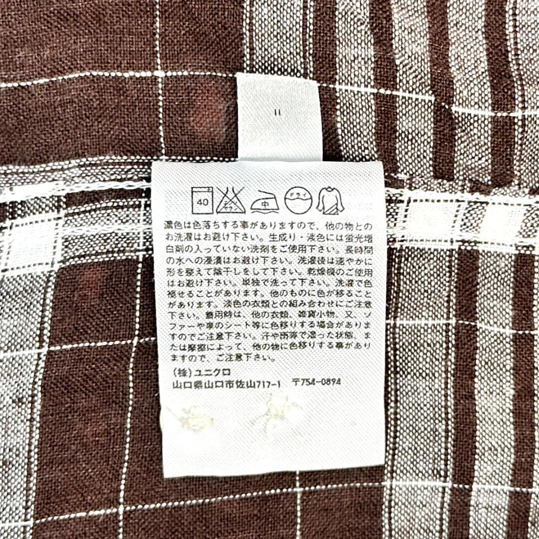 UNIQLO リネンシャツ チェック ブラウン サイズXL HR1985