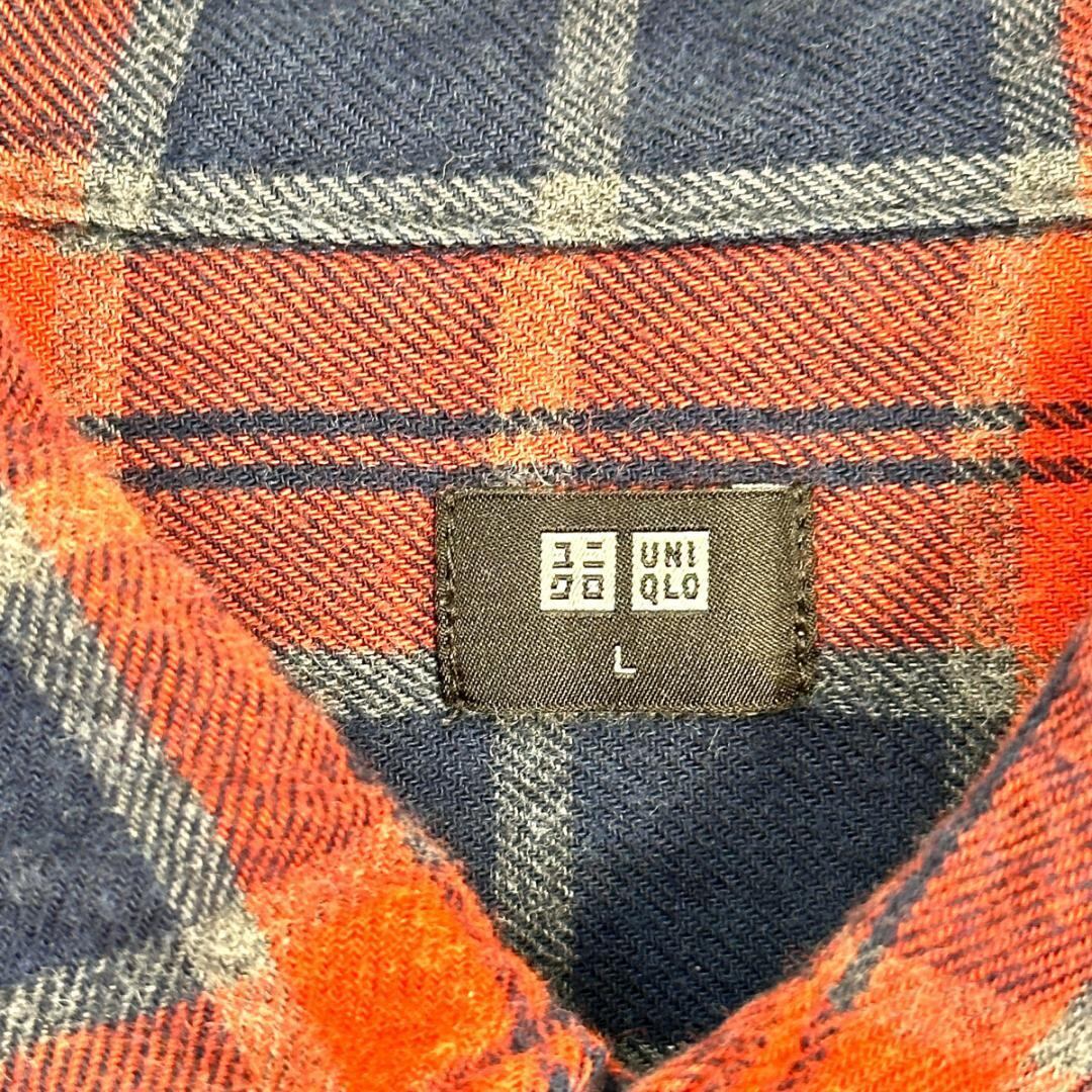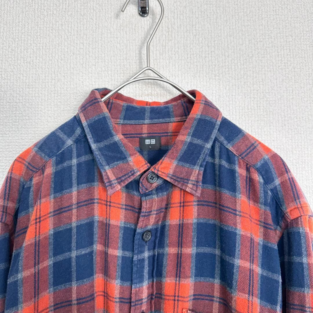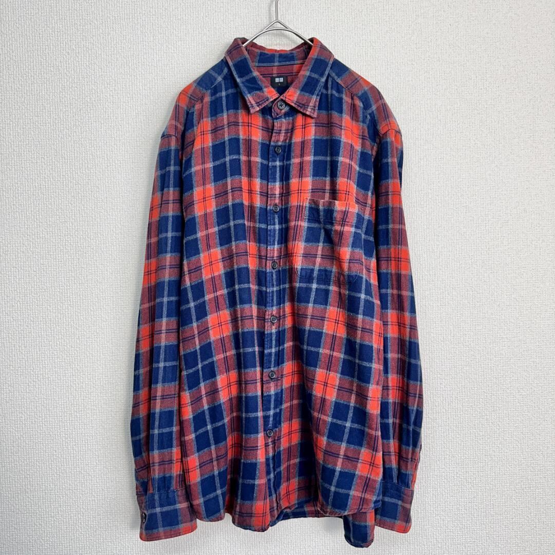 UNIQLO シャツ 青×オレンジ サイズL HR1988