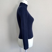 REDYAZEL(レディアゼル)のニットです。ネイビーカラーの落ち着いた色味で、上品かつフェミニンな印象の一着。コンパクトなシルエットが特徴で、スカートやハイウエストボトムスと相性が良く、きれいめからカジュアルまで幅広いスタイリングに取り入れやすいアイテムです。
