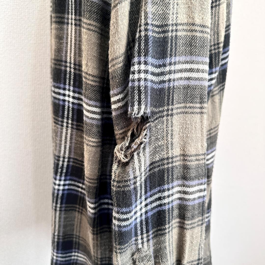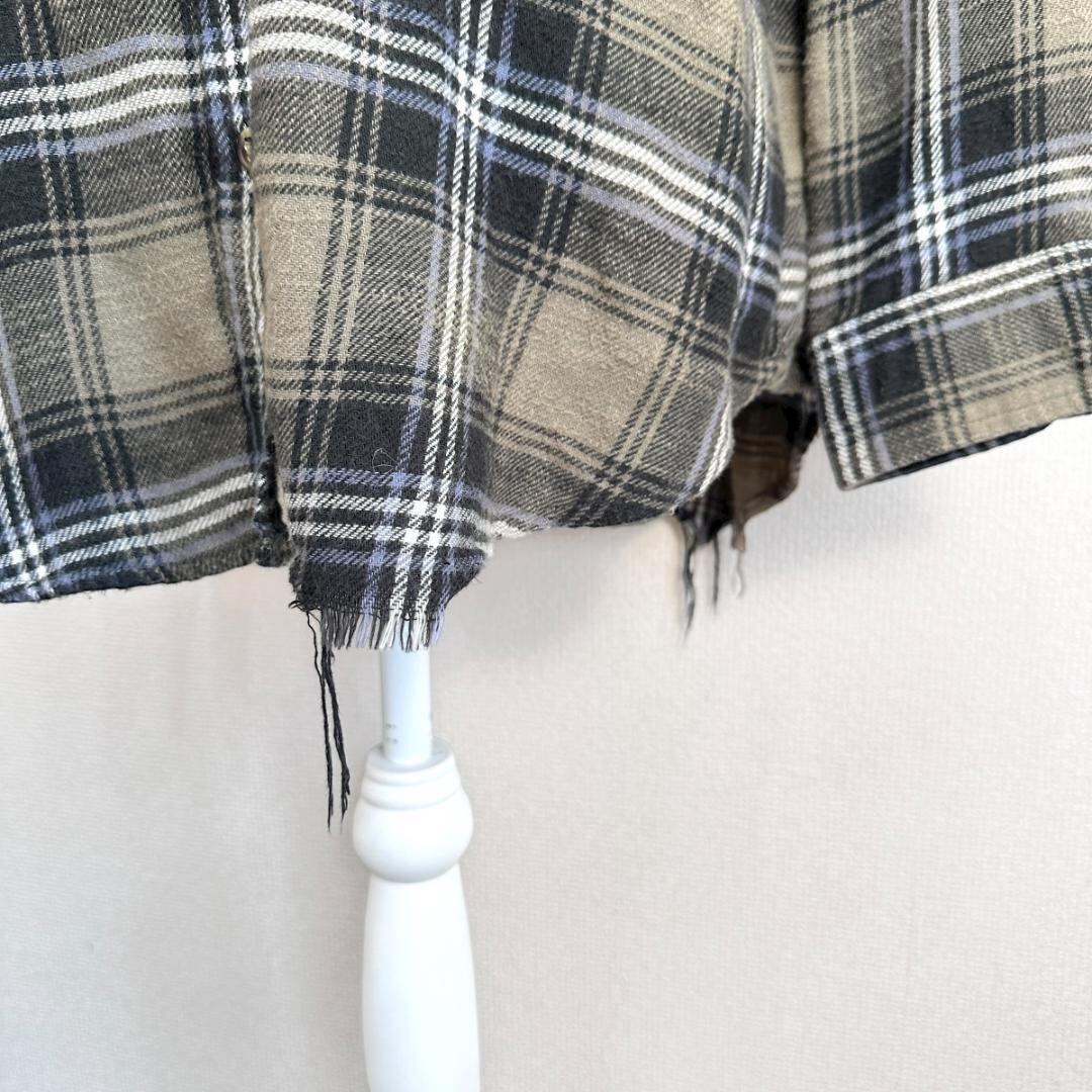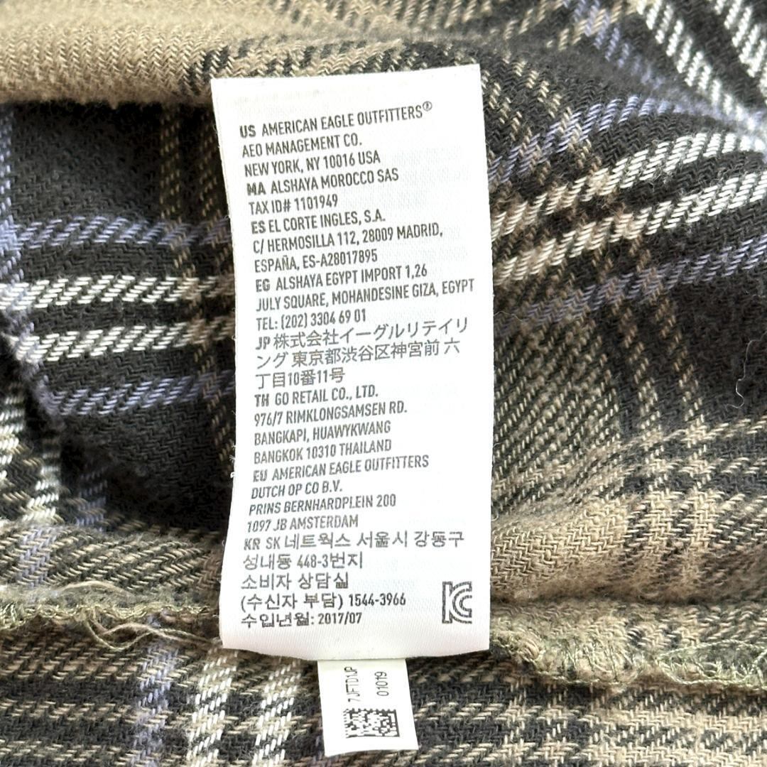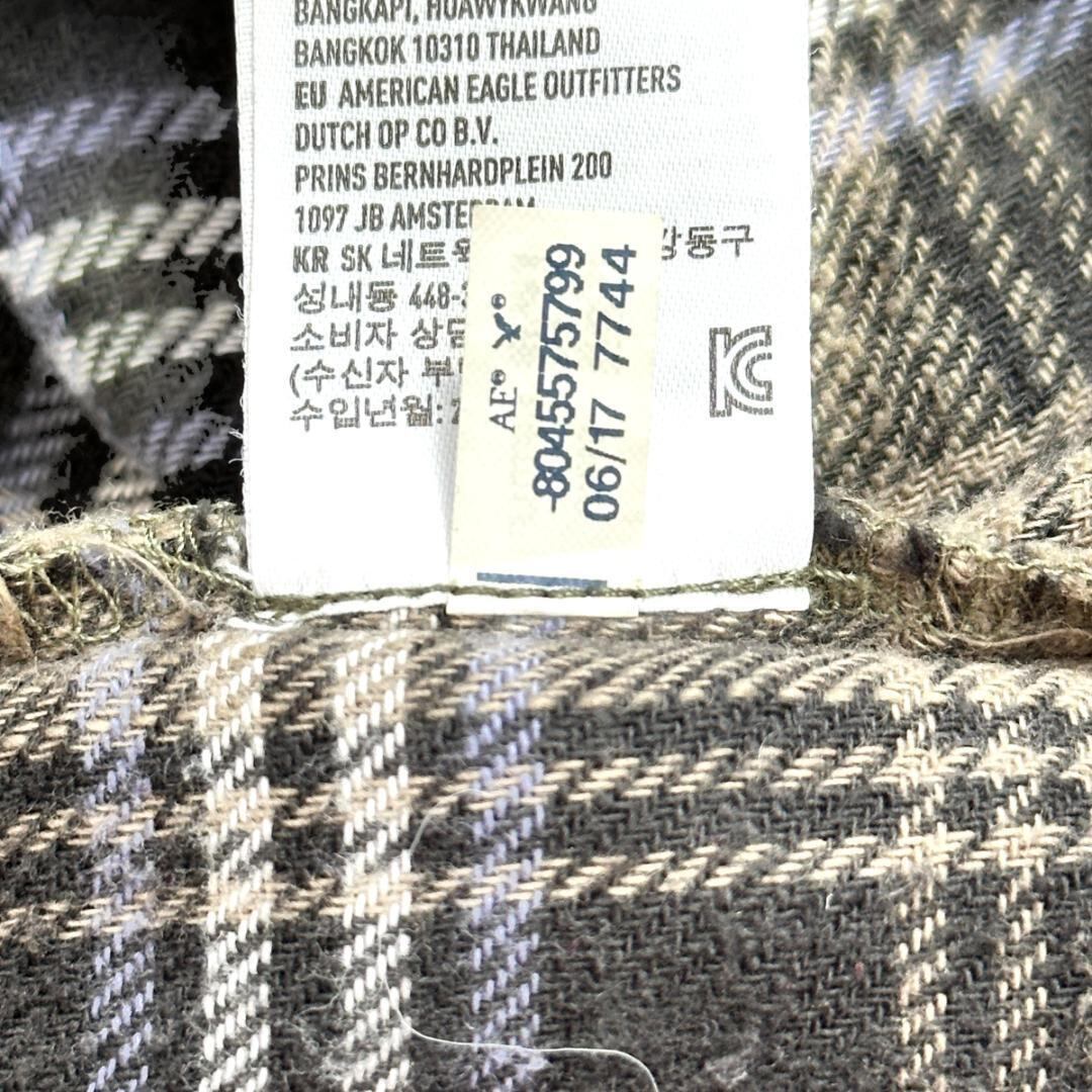 AMERICAN EAGLE(アメリカンイーグル)のダメージリメイクシャツです。グリーン系カラーをベースに、ダメージ加工やリメイク風のデザインが施された、存在感のある一着。程よくラフな雰囲気があり、古着スタイルやストリート、カジュアルコーデの主役として活躍します。一枚着はもちろん、羽織りとしても使いやすいアイテムです。